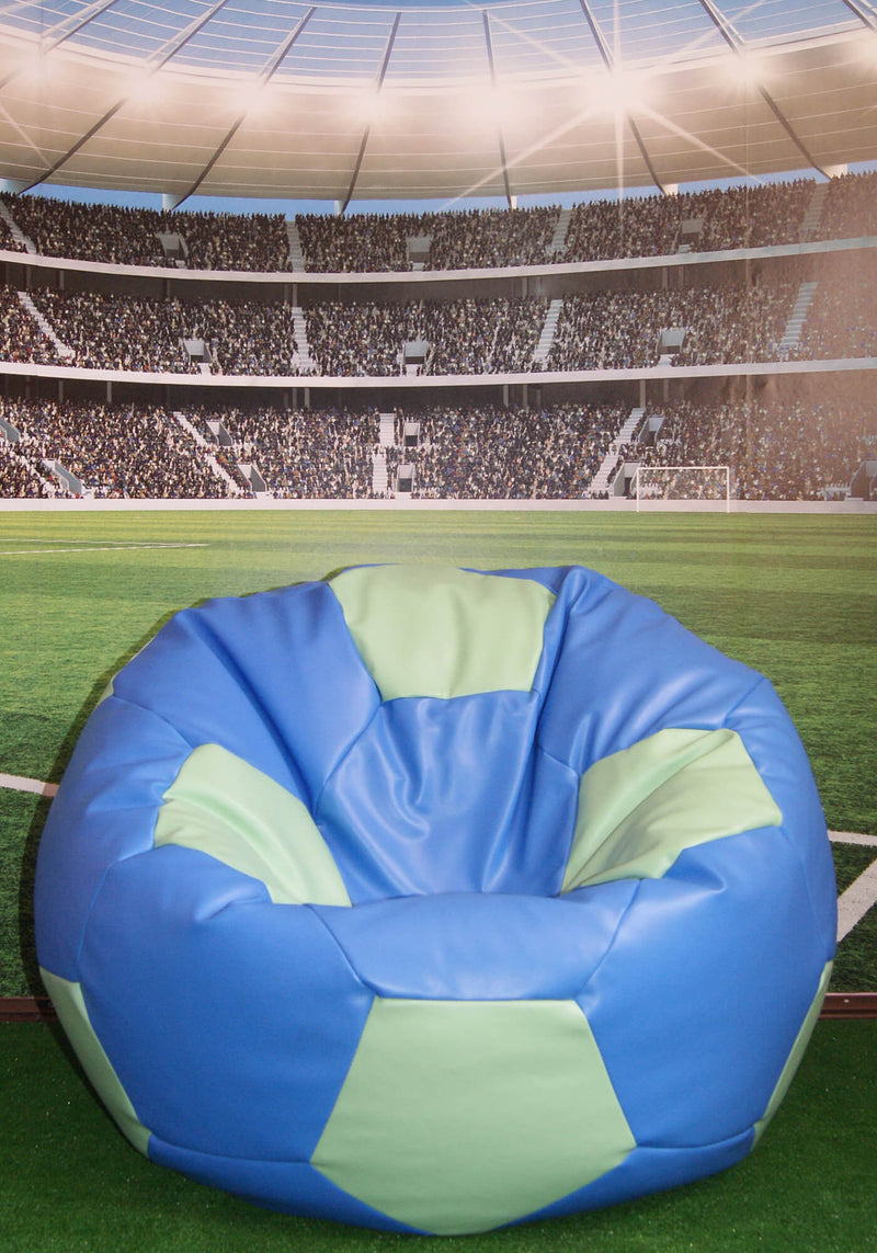 Poltrona a Sacco Pouf Ø100 cm in Similpelle Baselli Pallone da Calcio Celeste e Verde Menta