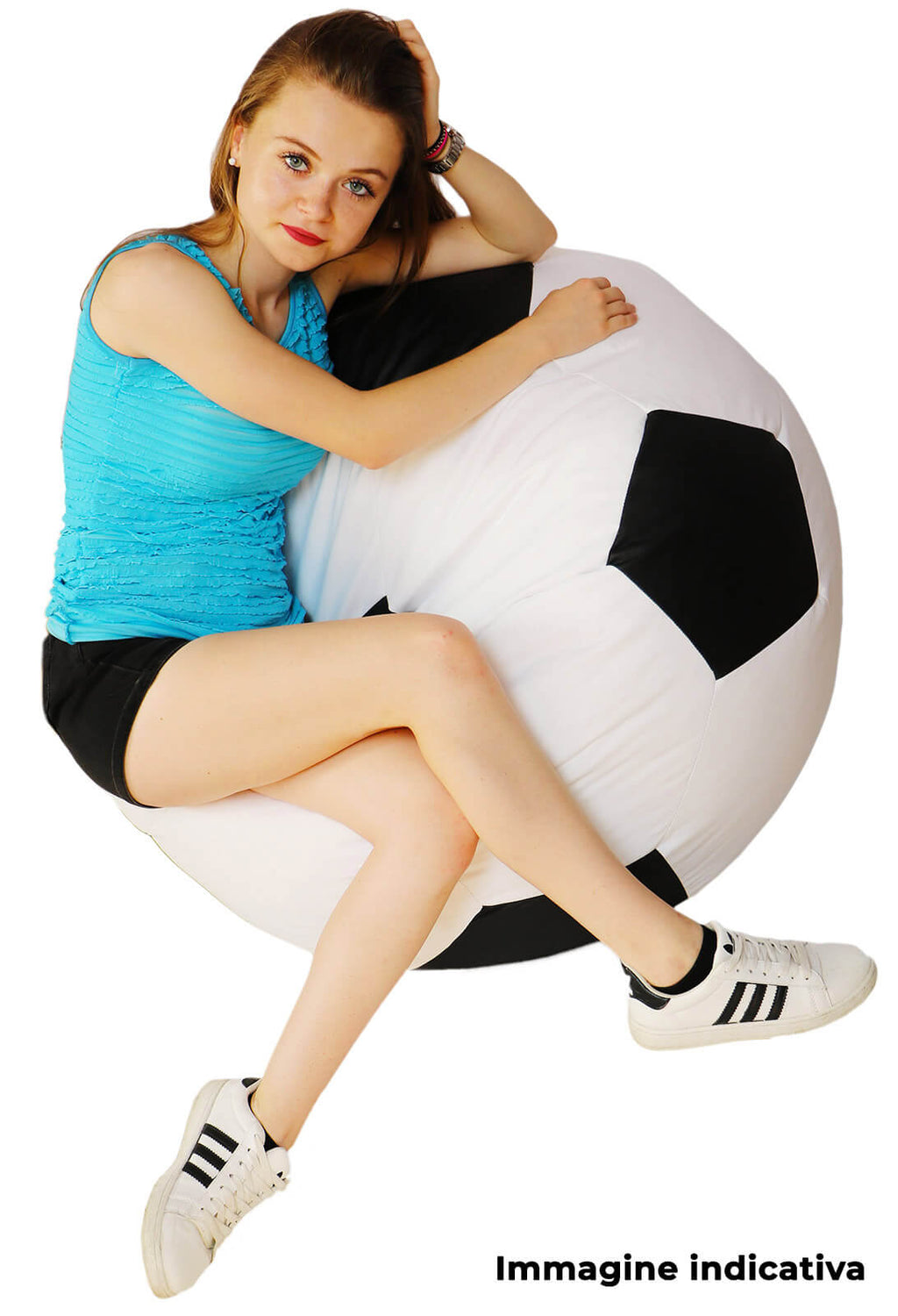 Poltrona a Sacco Pouf ergonomica a forma di Pallone da Calcio in Similpelle pronta per l'uso.