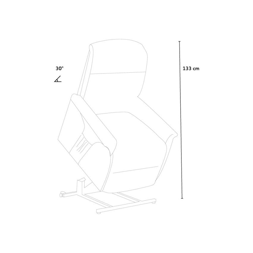 - Altezza massima con sistema lift alzapersona attivo: 133 cm (angolo di reclinazione poltrona 30°)