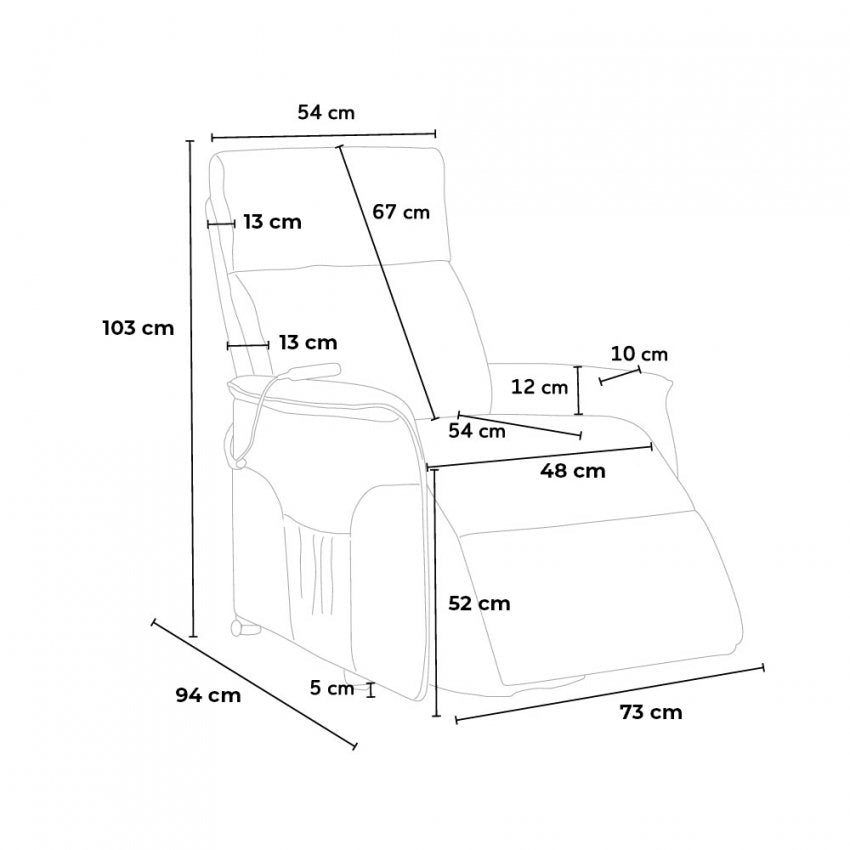 - Dimensioni poltrona totalmente distesa: 155 x 80 cm (lunghezza, altezza)
