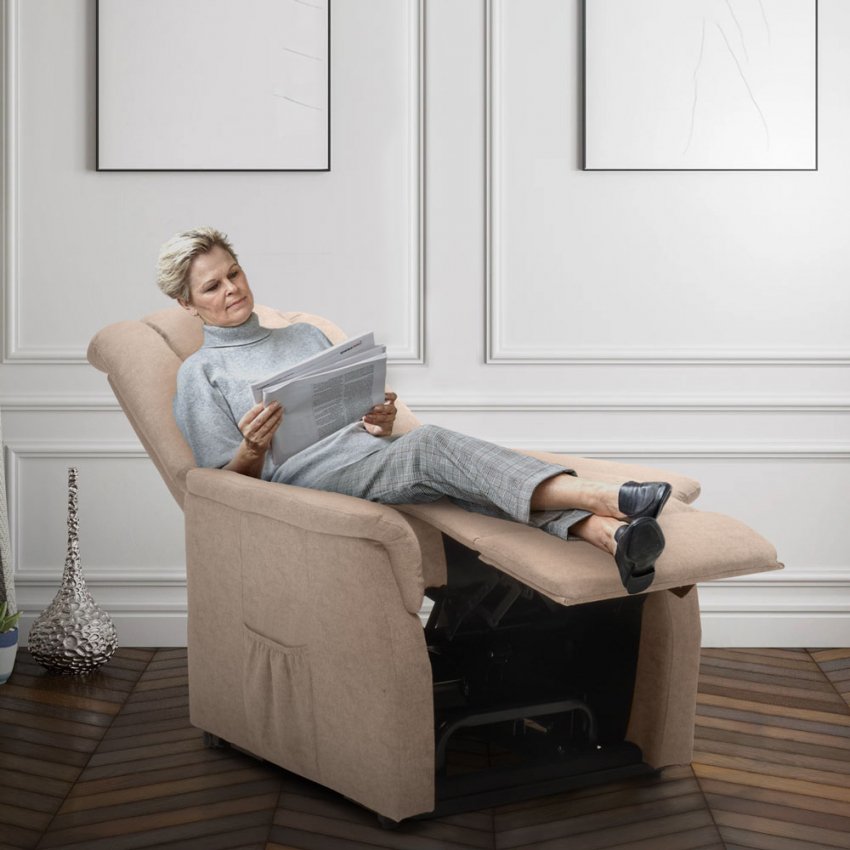 Poltrona Alzapersona Elettrica 1 Motore 80x86x107 cm in Tessuto Beige