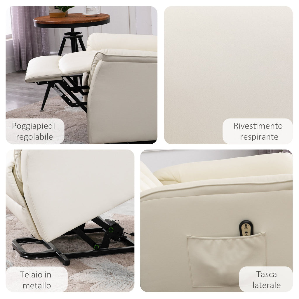 Poltrona Alzapersona Elettrica 1 Motore in Similpelle Crema