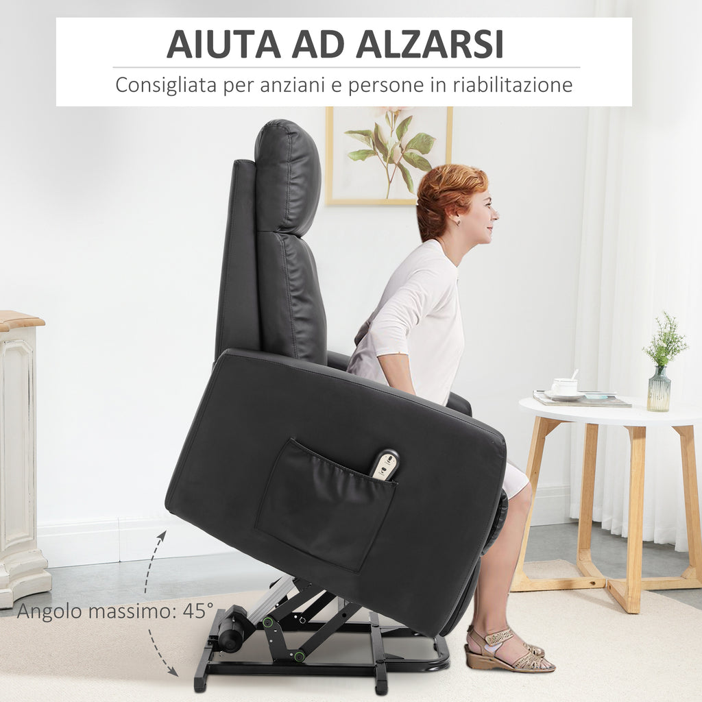 Poltrona Alzapersona Elettrica 1 Motore in Similpelle Nera