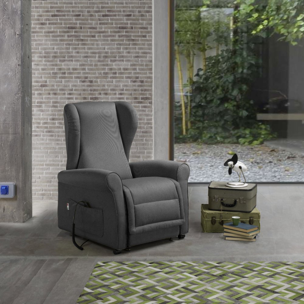Poltrona Alzapersona Elettrica 2 Motori 90x100x90 cm Sofa in Microfibra Dispositivo Medico 1 Grigio Scuro