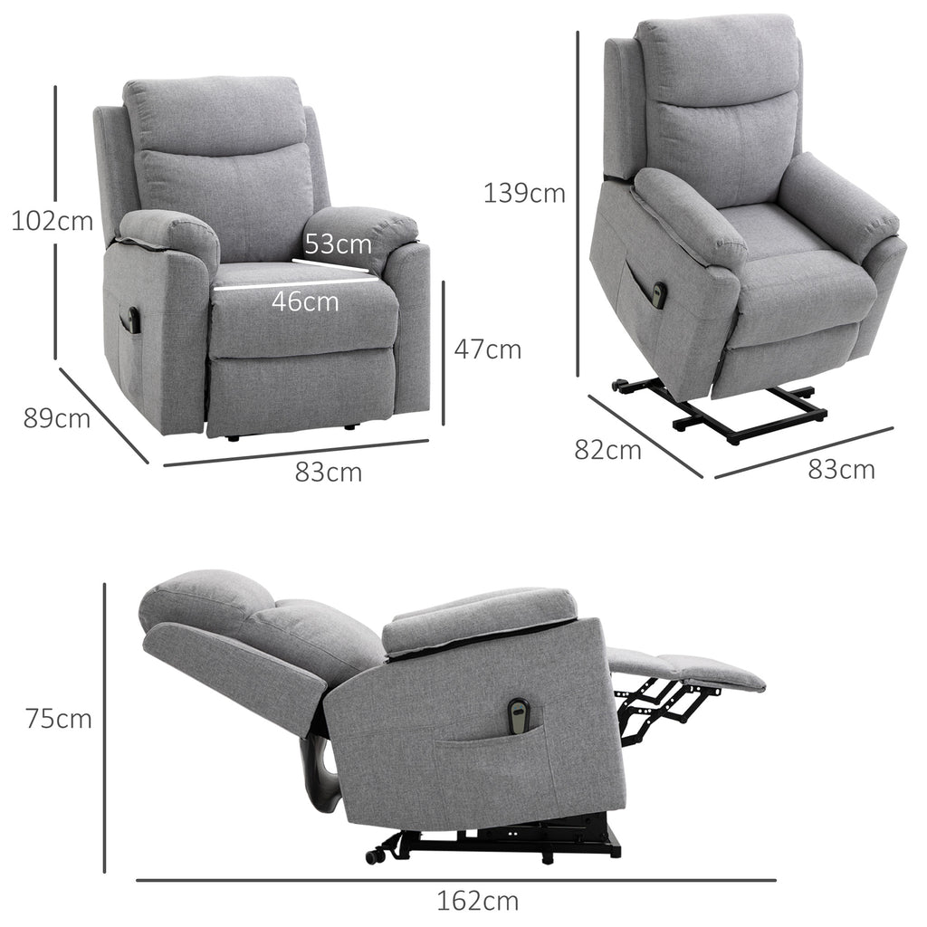Poltrona Alzapersona Elettrica Reclinabile con Telecomando e Poggiapiedi Grigio Chiaro