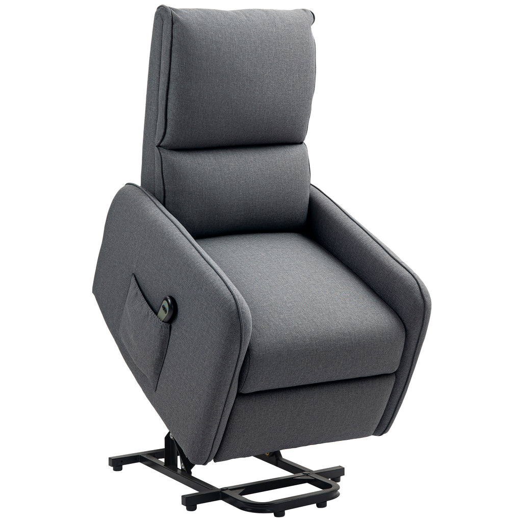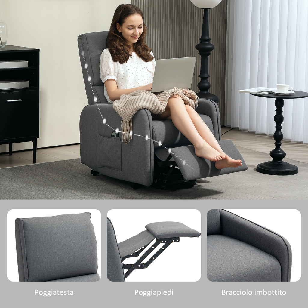 Poltrona Alzapersona Elettrica Reclinabile con Telecomando e Tasca in Tessuto Grigio Carbone