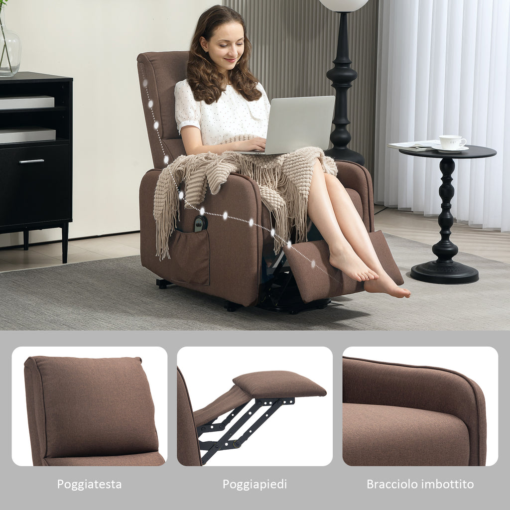 Poltrona Alzapersona Elettrica Reclinabile con Telecomando e Tasca in Tessuto Marrone Scuro