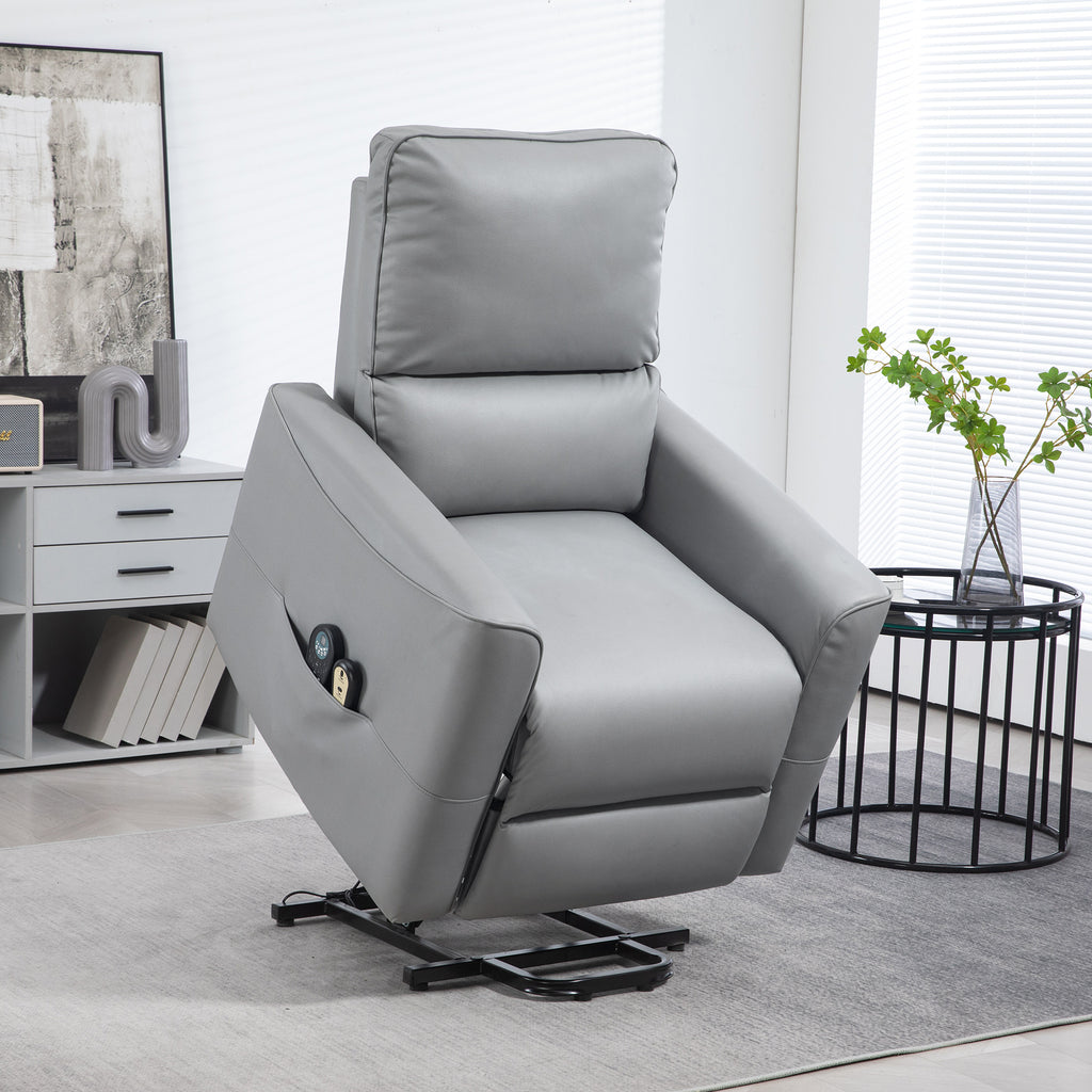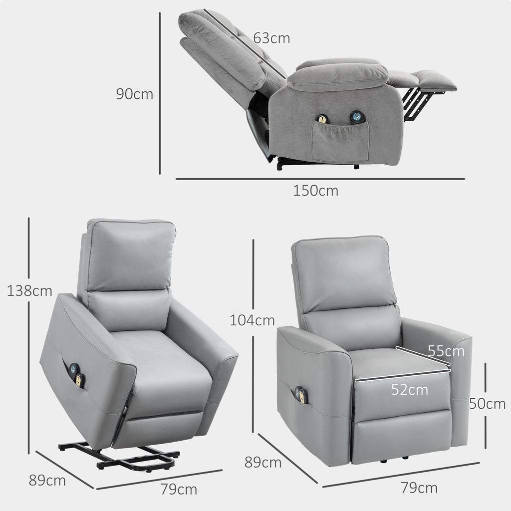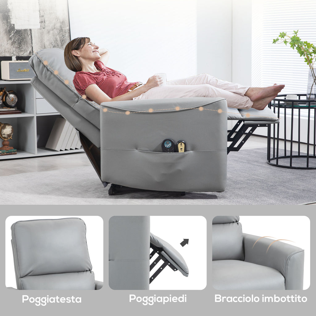 Poltrona Alzapersona Reclinabile 1 Motore con 8 Punti Massaggio 79x89x104 cm Riscaldamento e Telecomando Grigio Chiaro