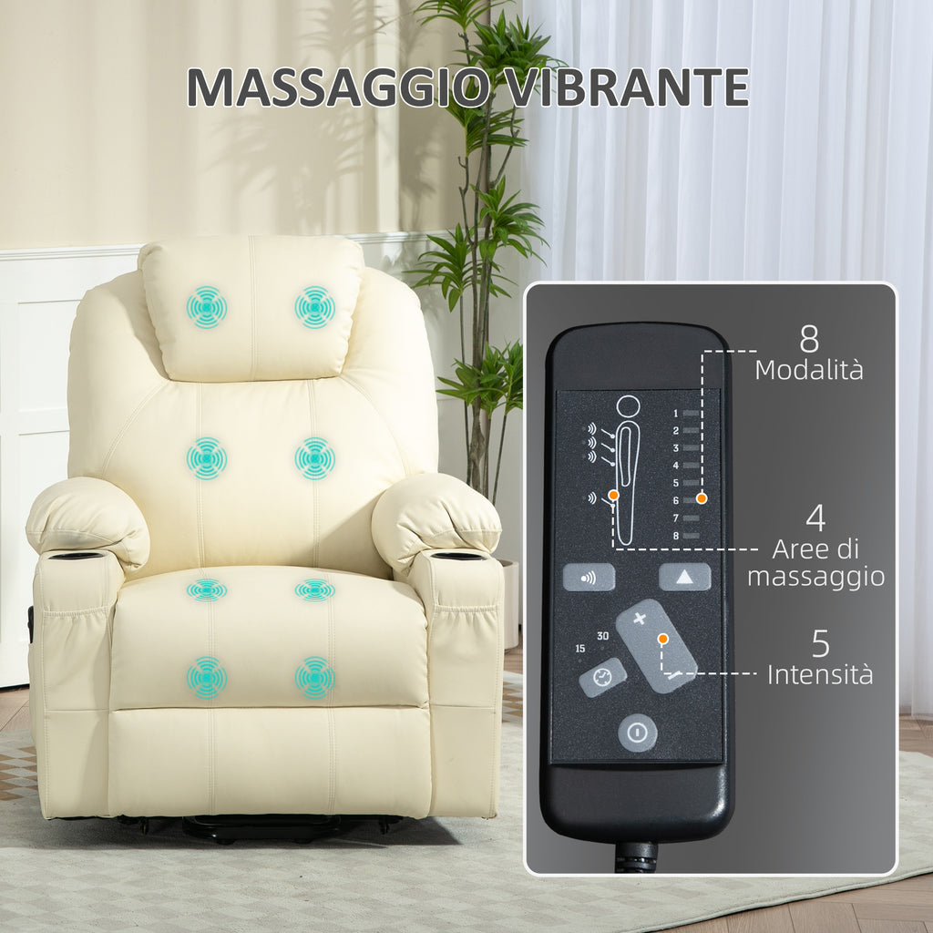 Poltrona Alzapersona Reclinabile con 8 Punti Massaggio e Telecomando Crema