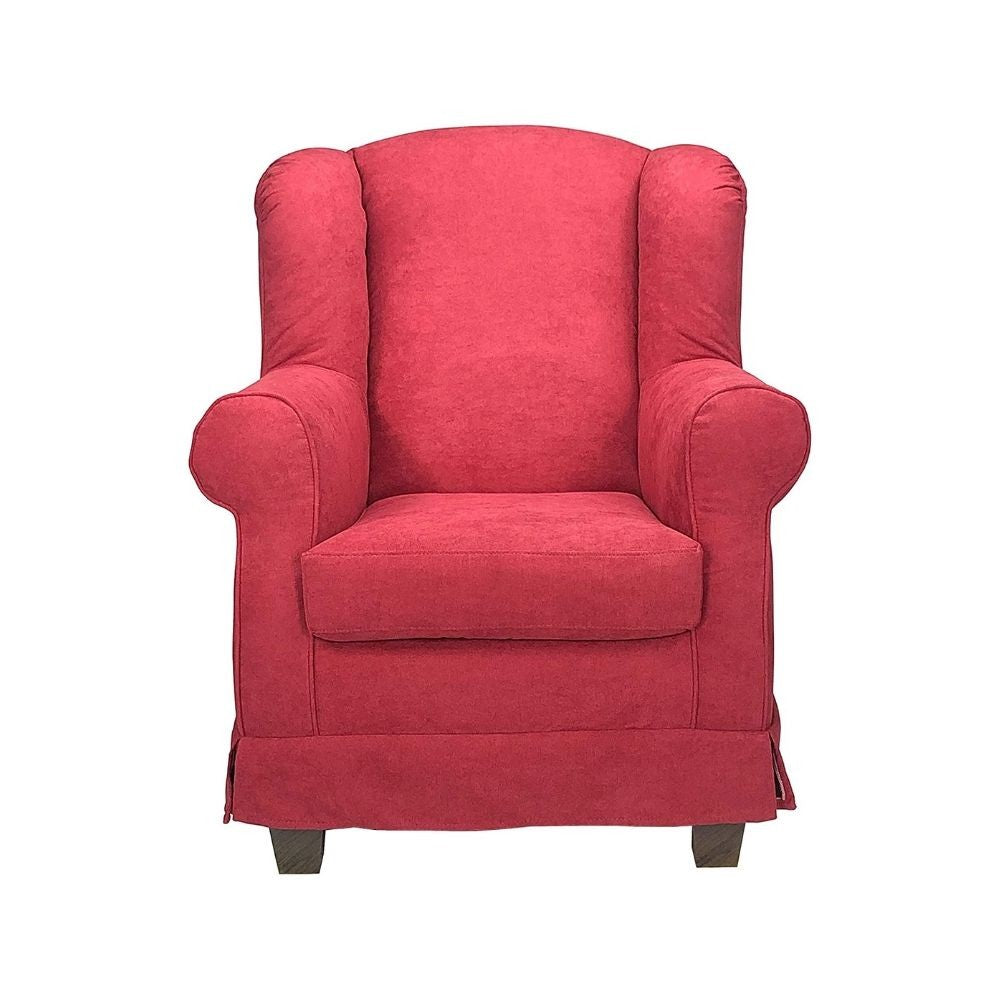 Poltrona in tessuto bordeaux Bergere. La struttura è in legno massello di abete e l’imbottitura è in poliuretano espanso. Prodotto sfoderabile e lavabile.