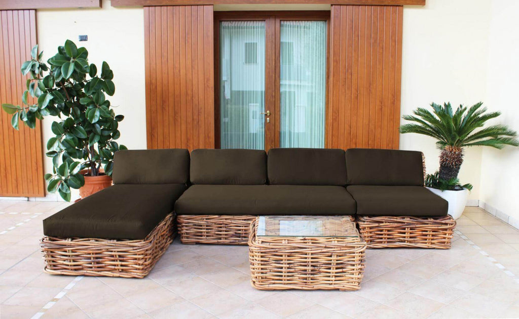 Poltrona Componibile Polinesia con Cuscini 75x87x105 cm in Rattan Marrone