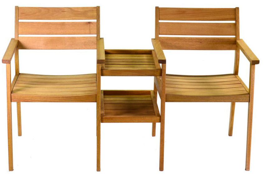 Poltrona da Giardino 2 posti con tavolino centrale 2 ripiani in Legno di Eucalipto.