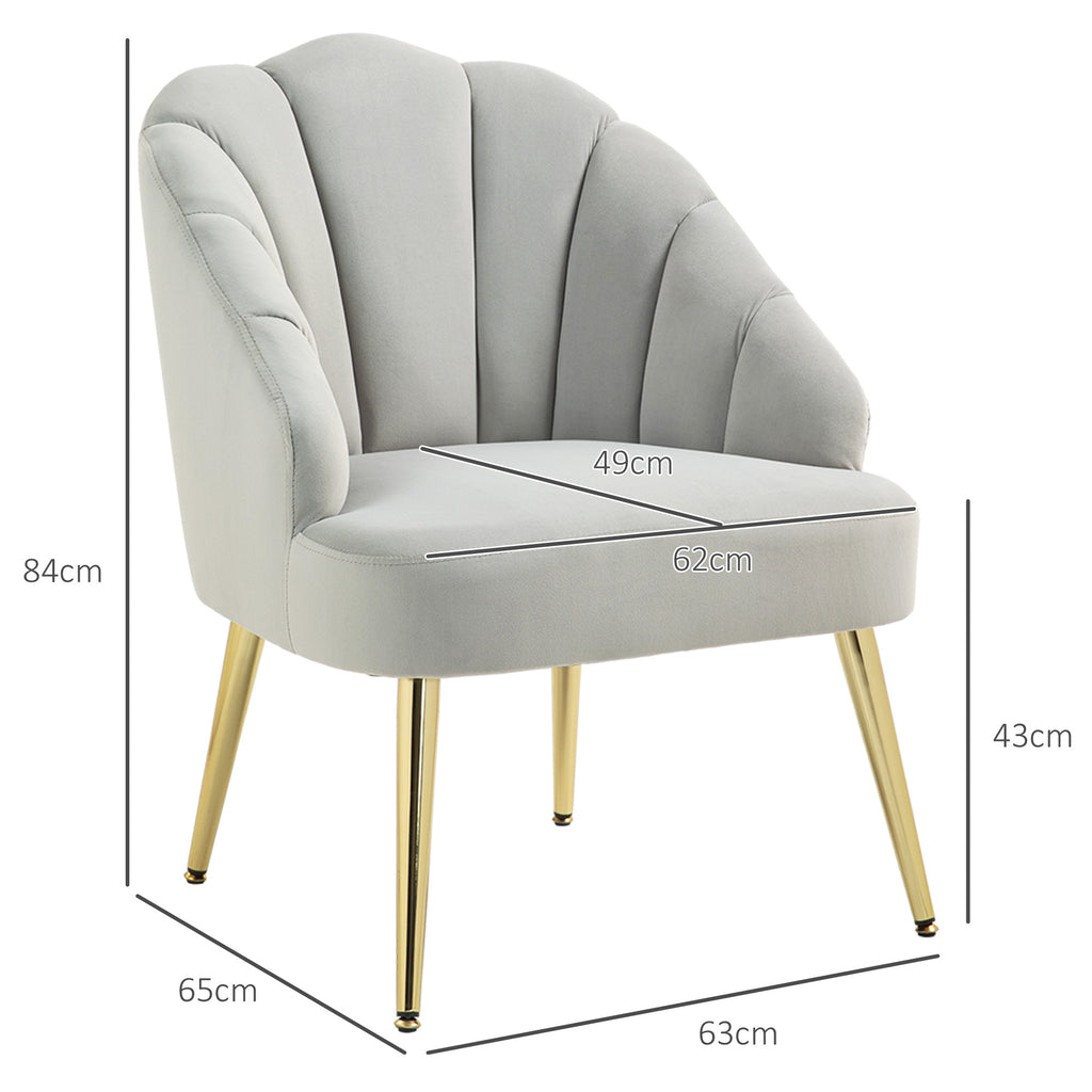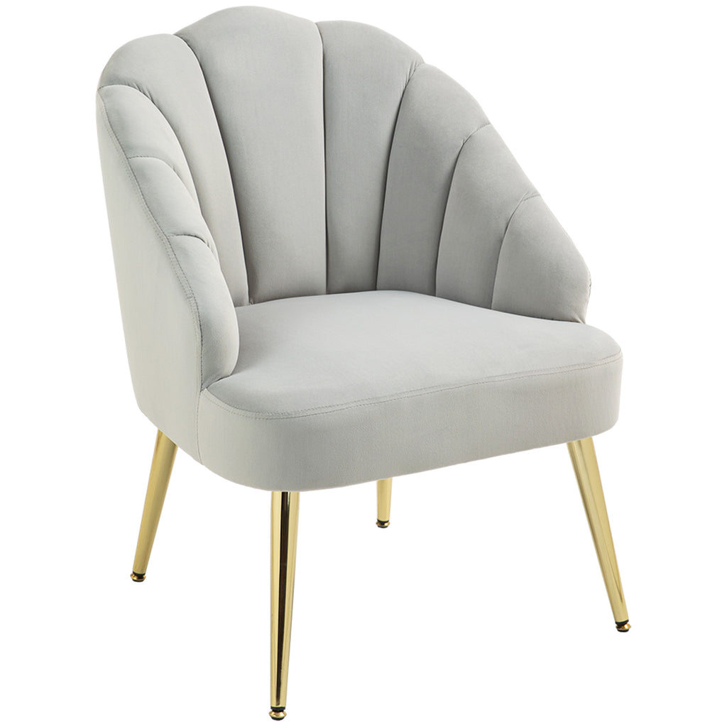 Poltrona da Salotto Imbottita a Conchiglia Stile Art Decò in Velluto Grigio