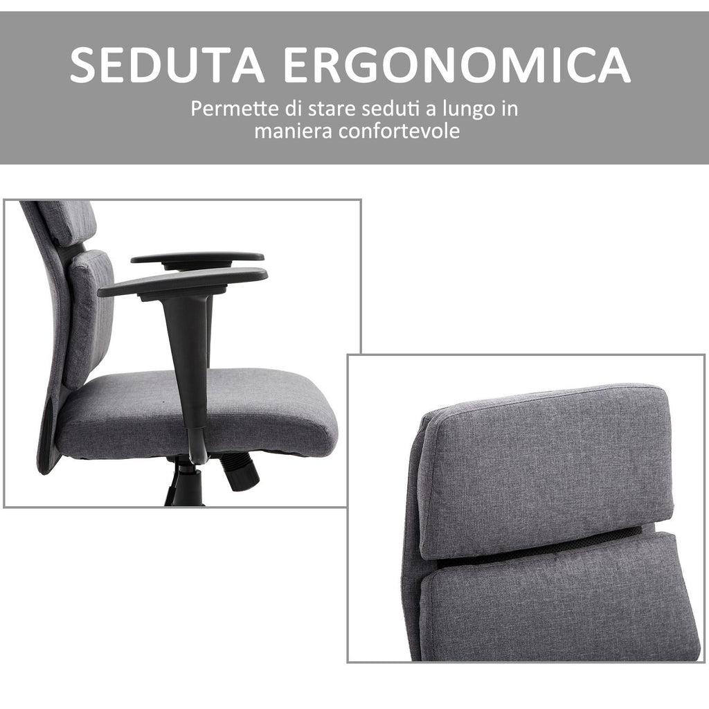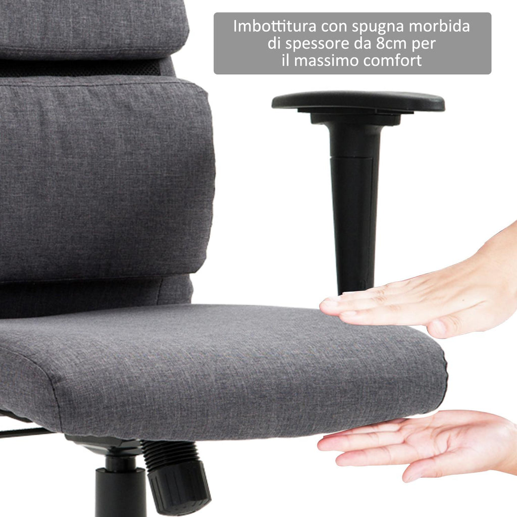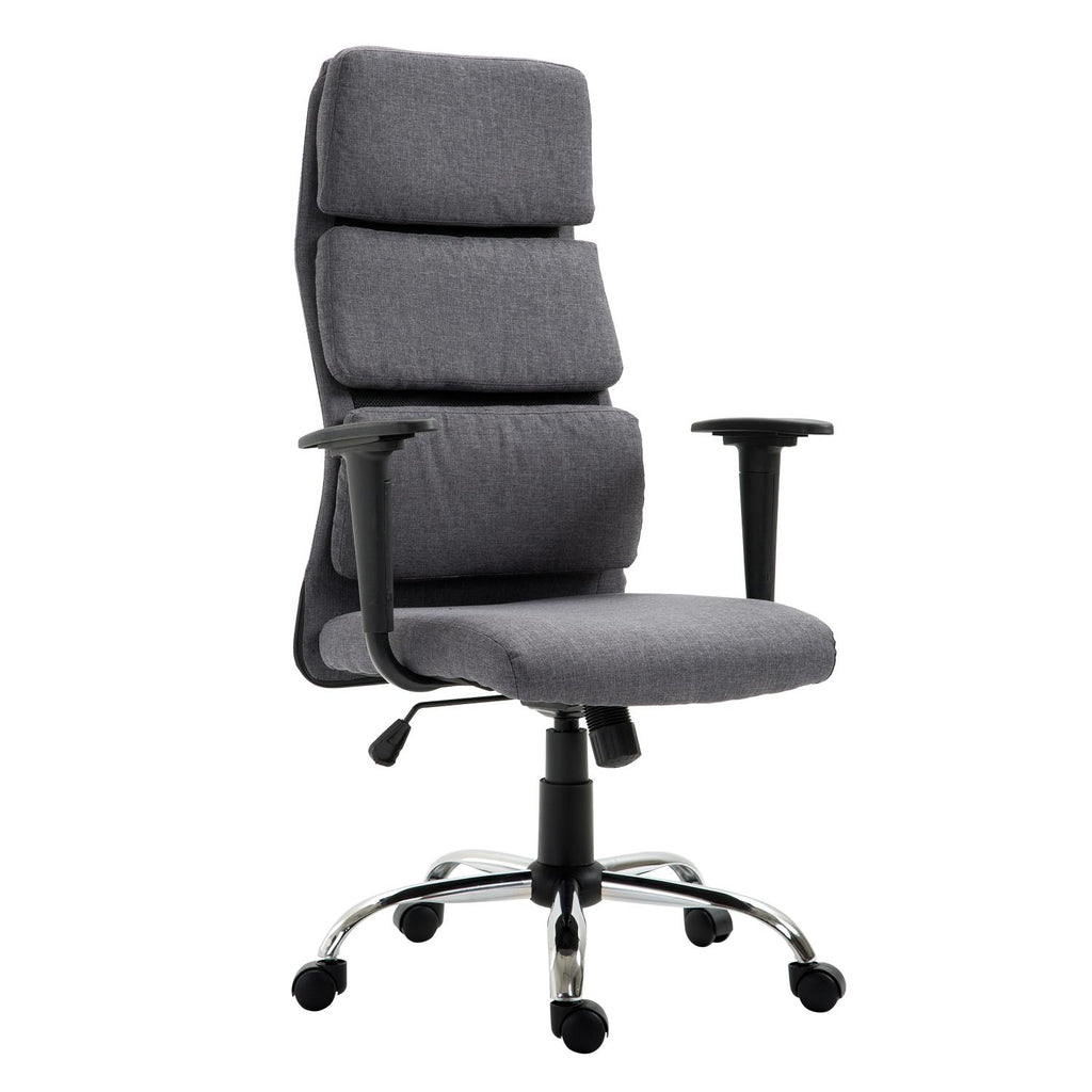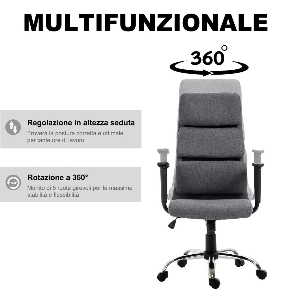 Poltrona da Ufficio Girevole Schienale Alto Regolabile in Tessuto Grigio 50x56.5x117-127 cm