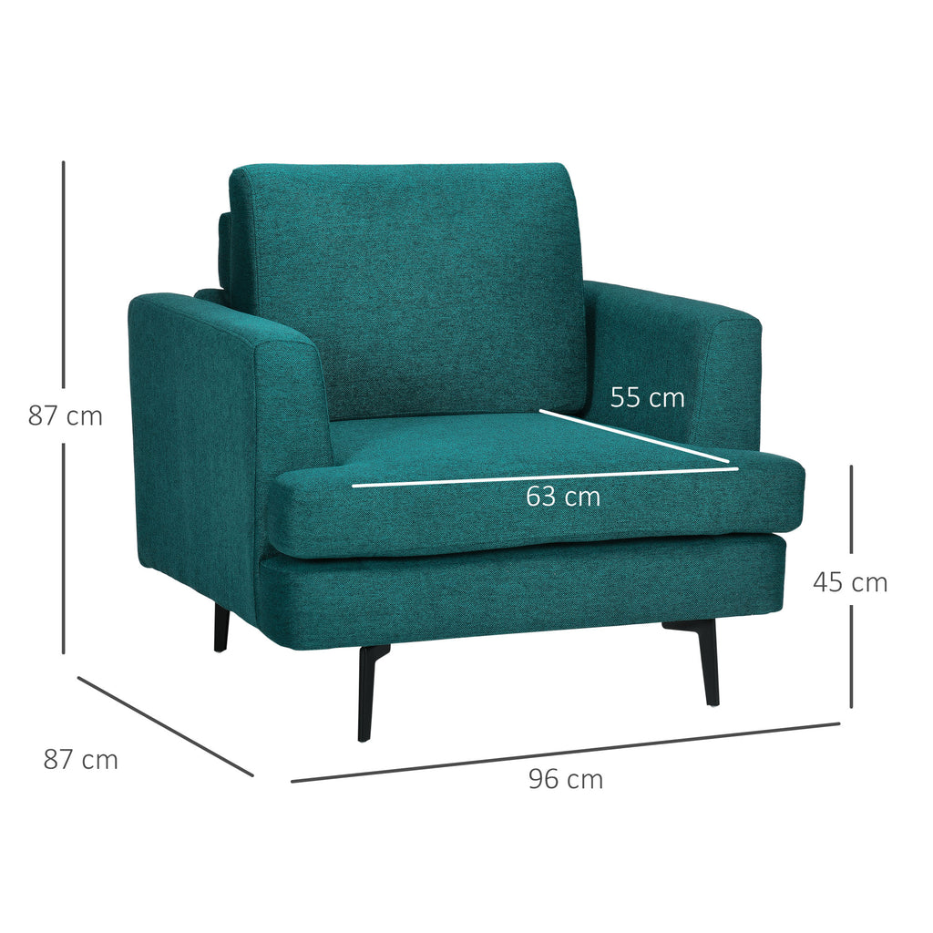 Poltrona Imbottita 96x87x87 cm Gambe in Acciaio in Tessuto Verde