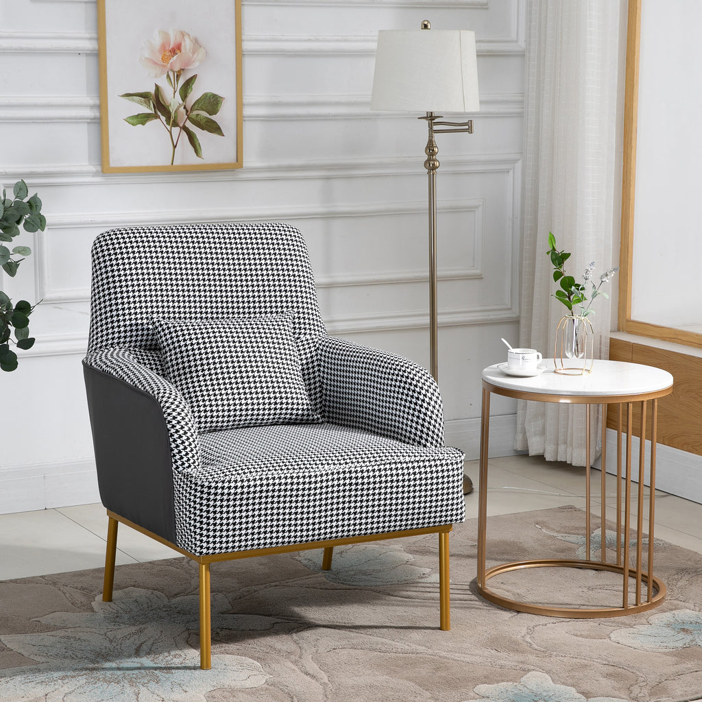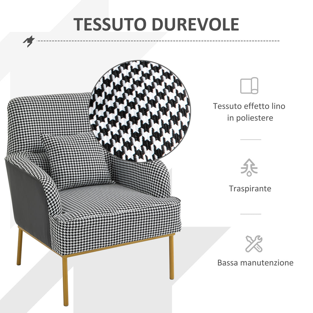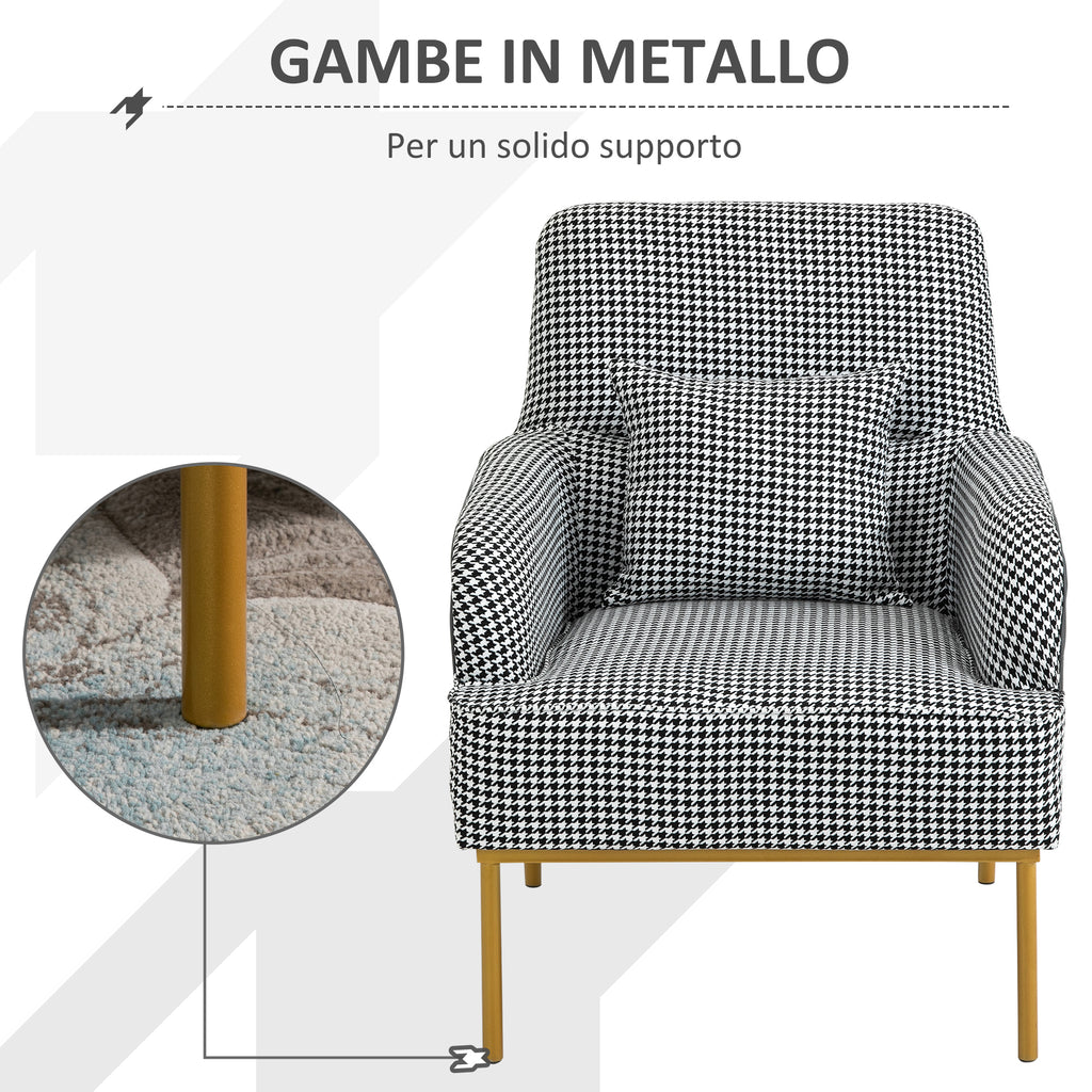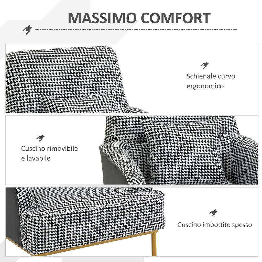 - DETTAGLI VINTAGE: Il rivestimento pied-de-poule si fonde alla perfezione con le gambe oro, creando una poltroncina perfetta per ogni spazio.