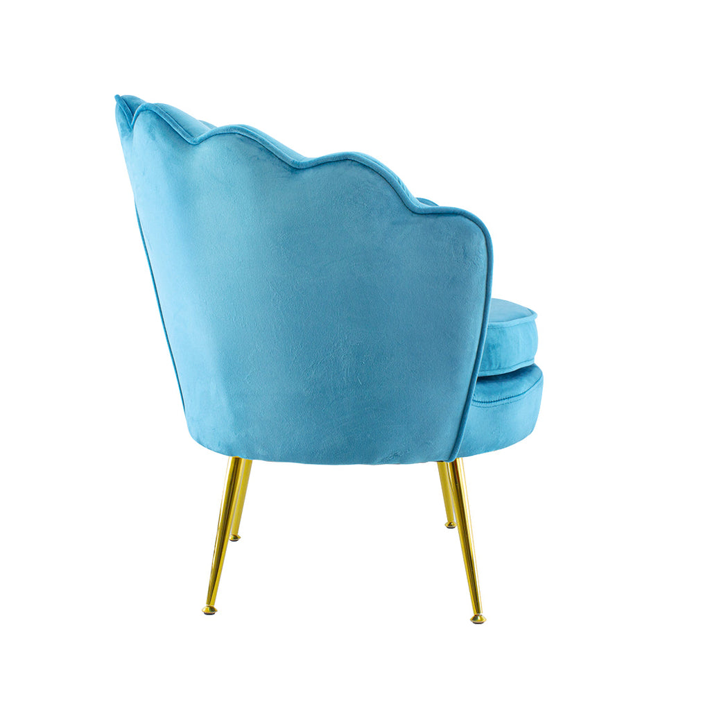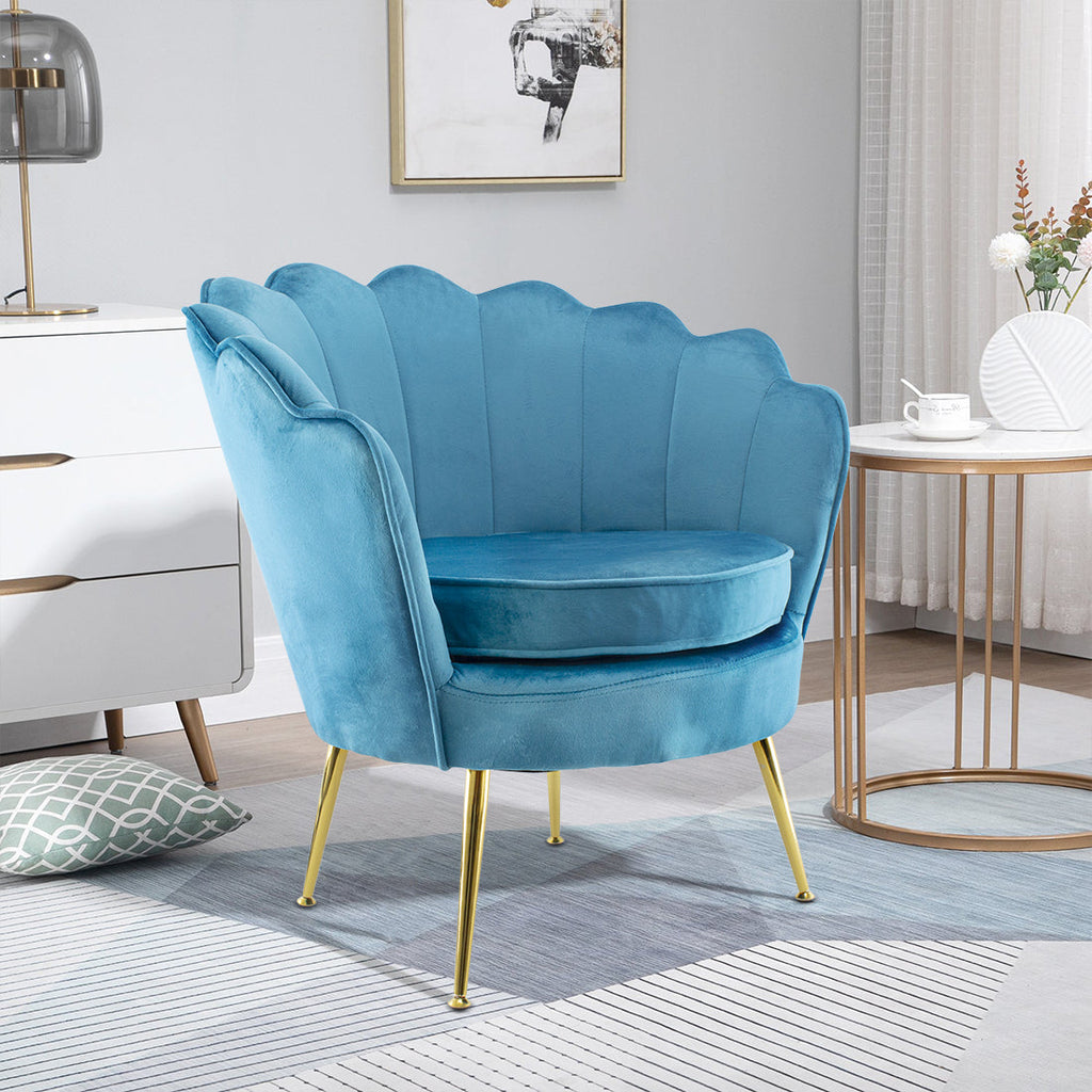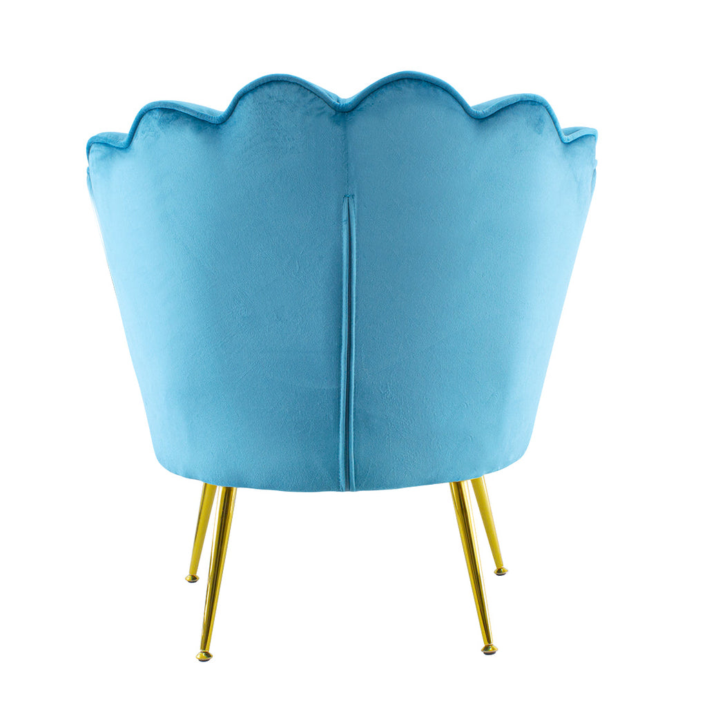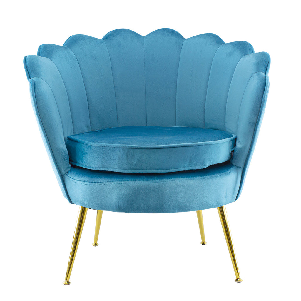 Poltrona Imbottita Schienale a Conchiglia in Velluto Piedi Oro Blu