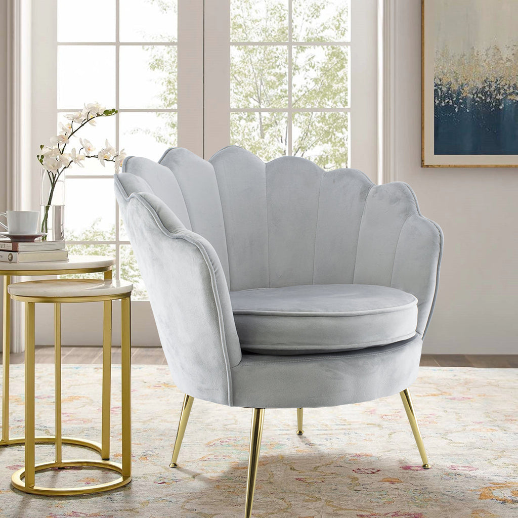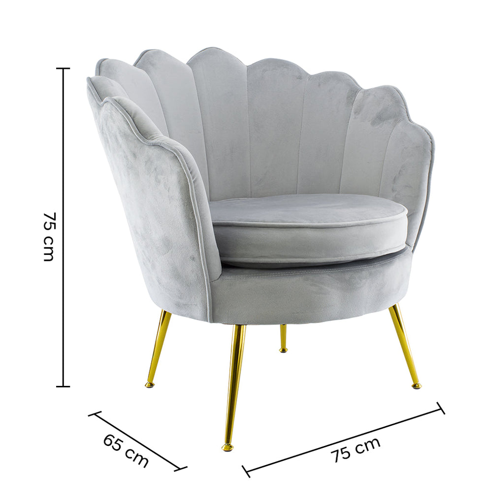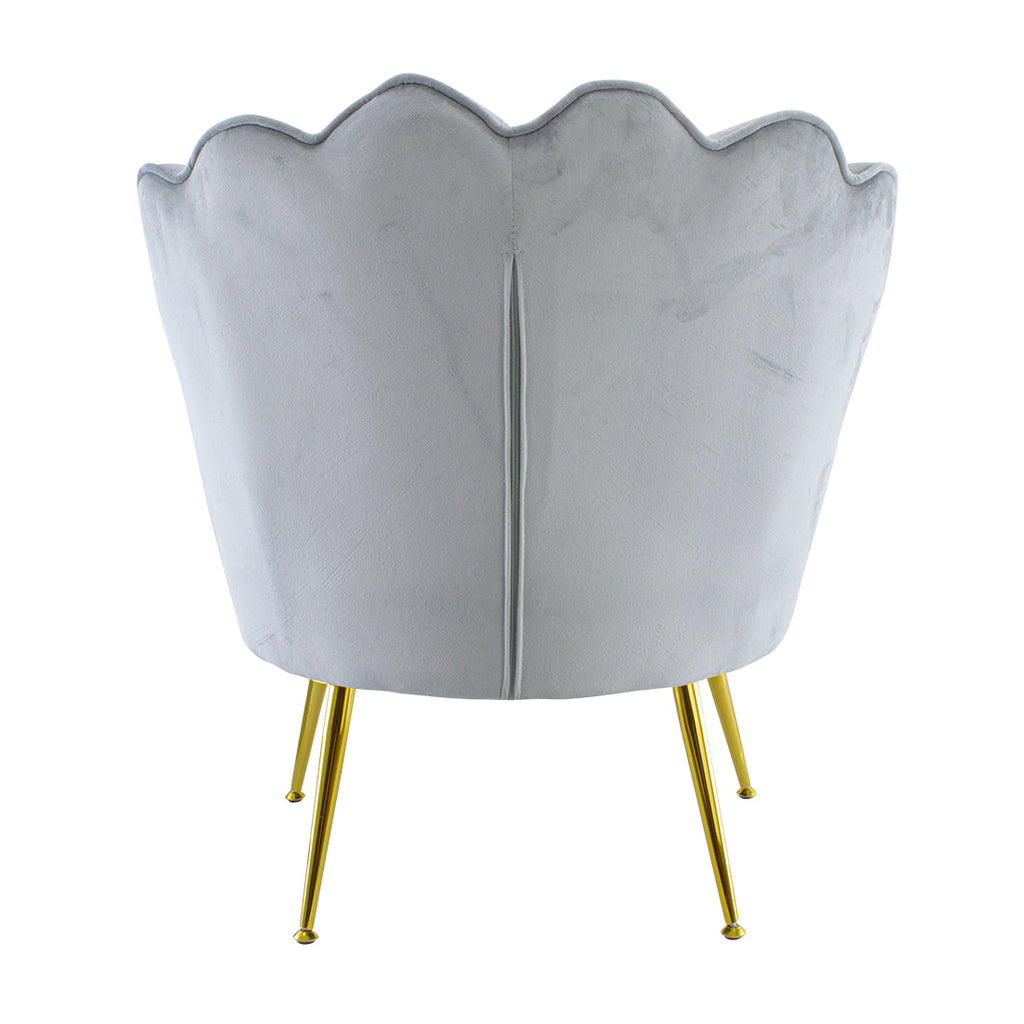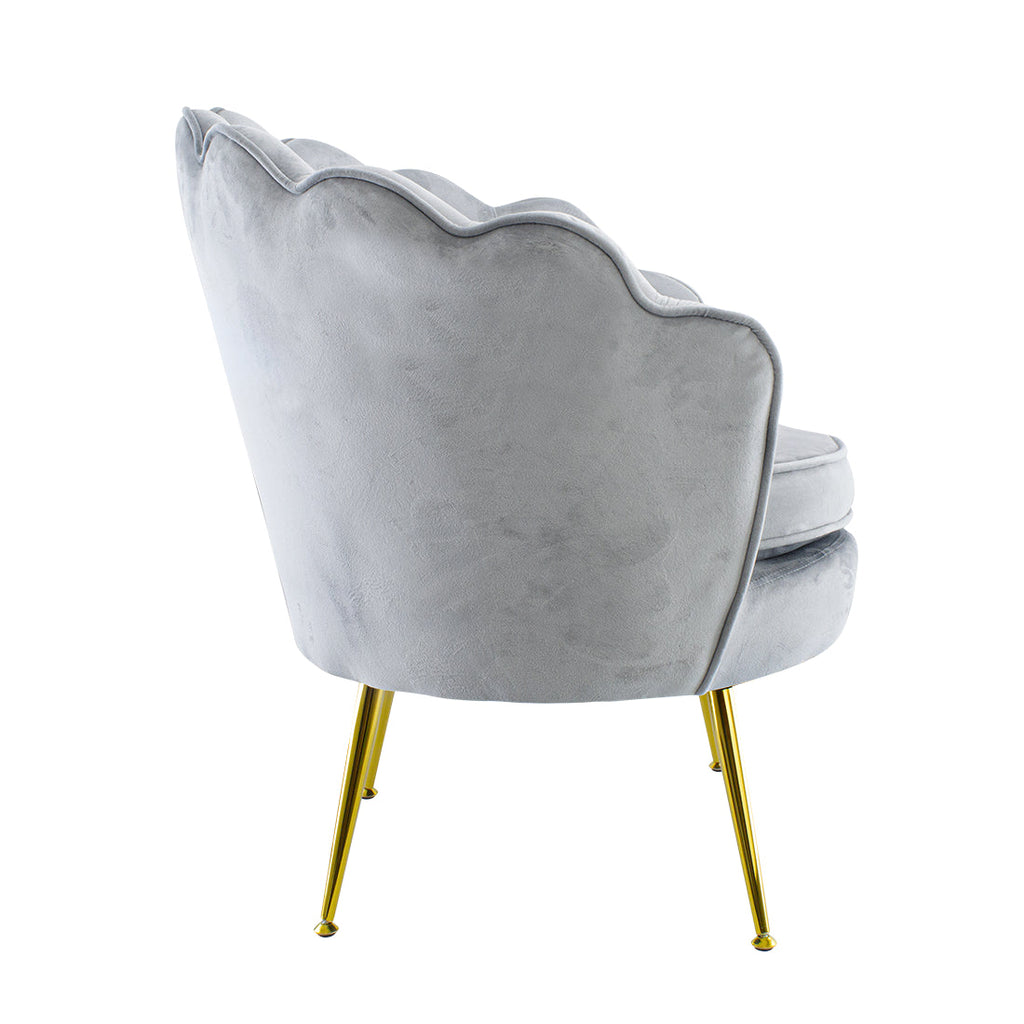 Poltrona Imbottita Schienale a Conchiglia in Velluto Piedi Oro Grigio