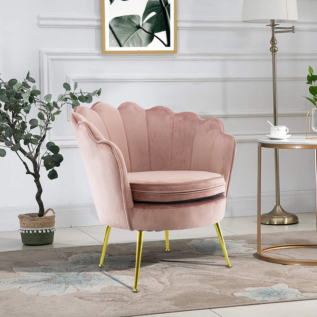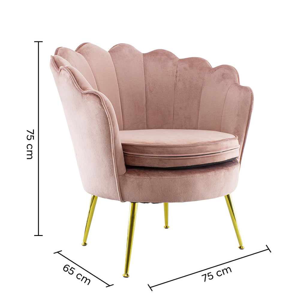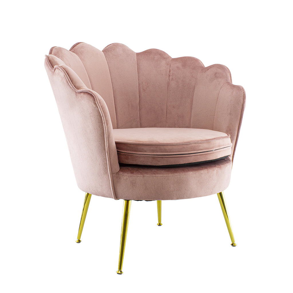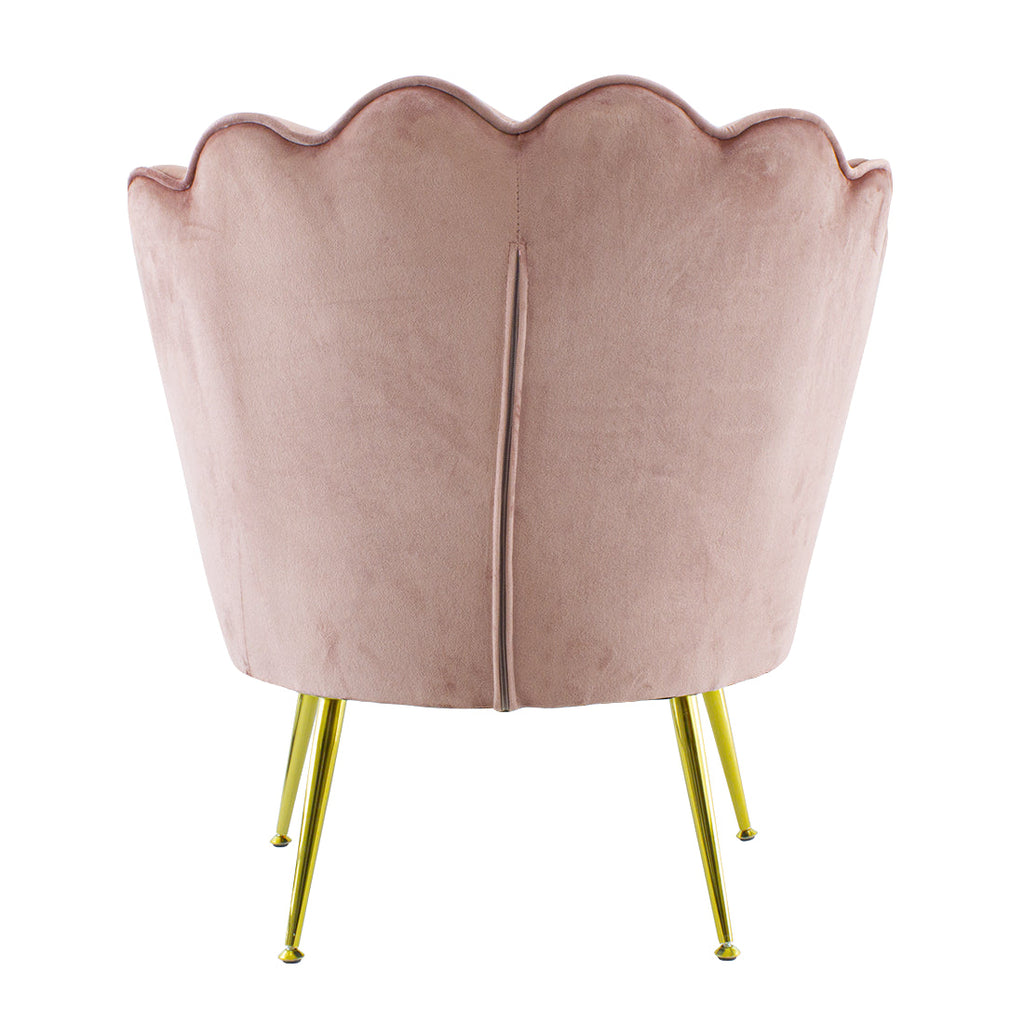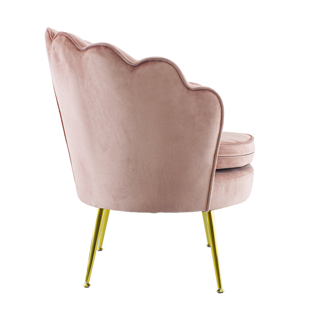 Poltrona Imbottita Schienale a Conchiglia in Velluto Piedi Oro Rosa antico