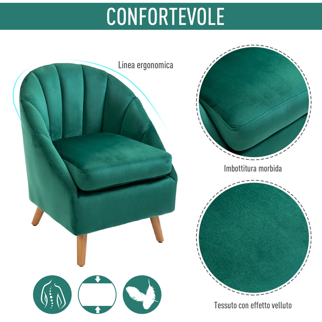 Poltrona in Velluto con Gambe in Legno Verde