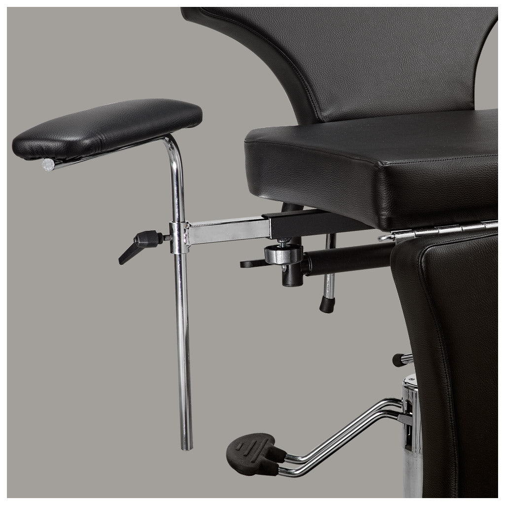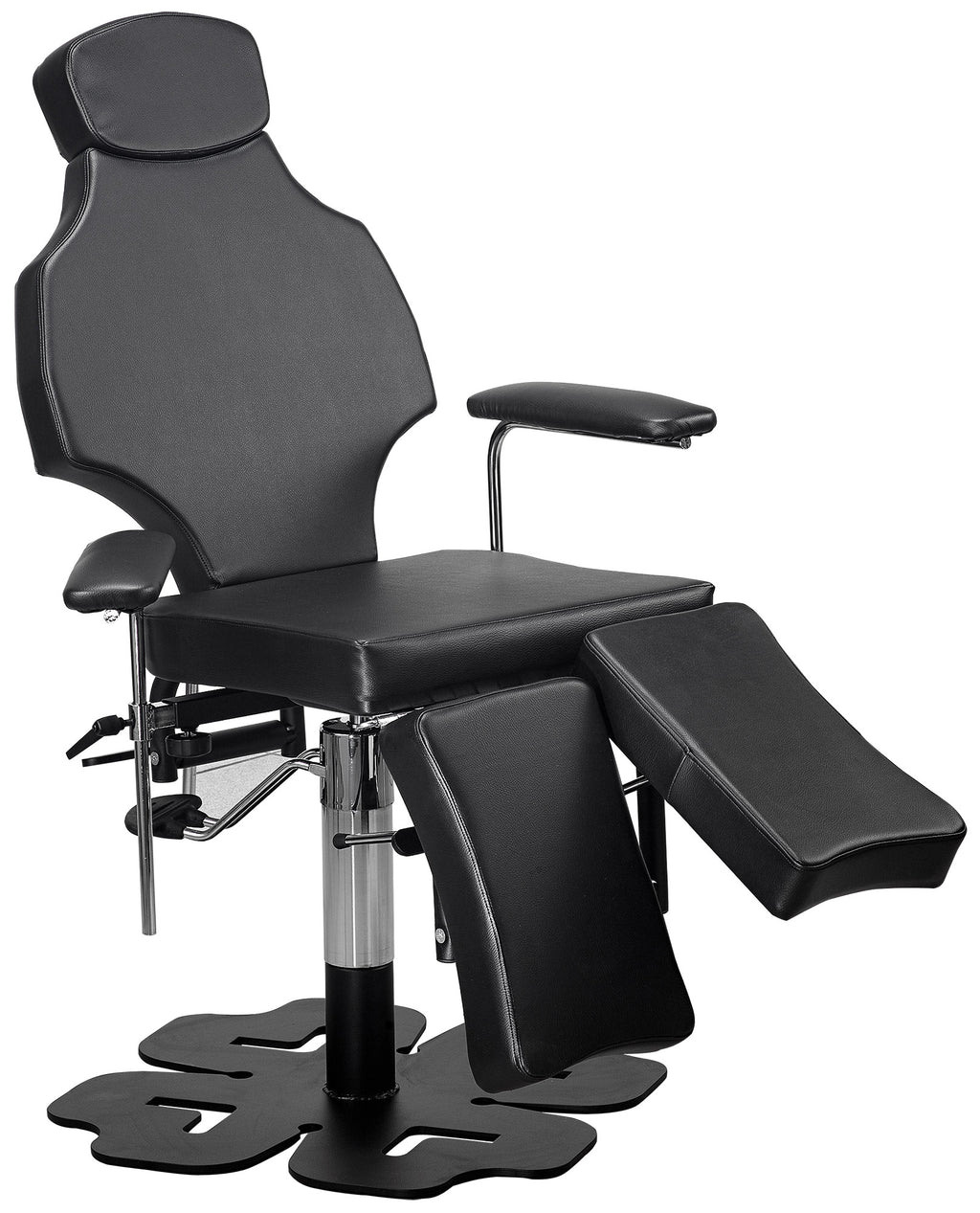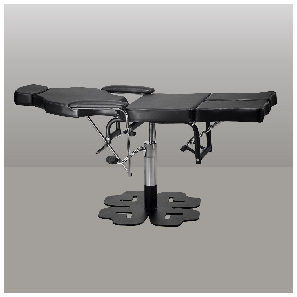 Poltrona Lettino polifunzionale per tatuatori. Telaio in acciaio verniciato a polvere epossidica di colore nero.