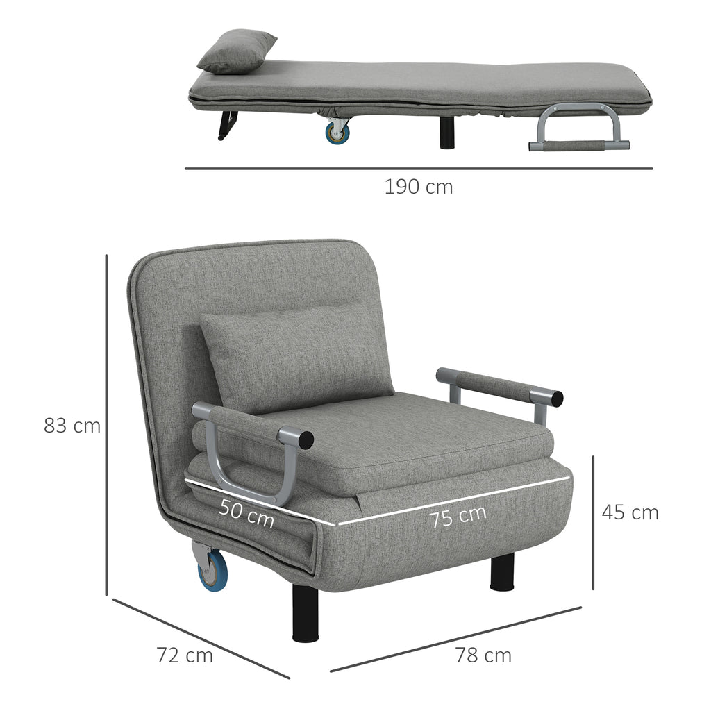 Poltrona Letto Singolo Chaise Longue 78x72x83 cm in Tessuto Grigio