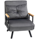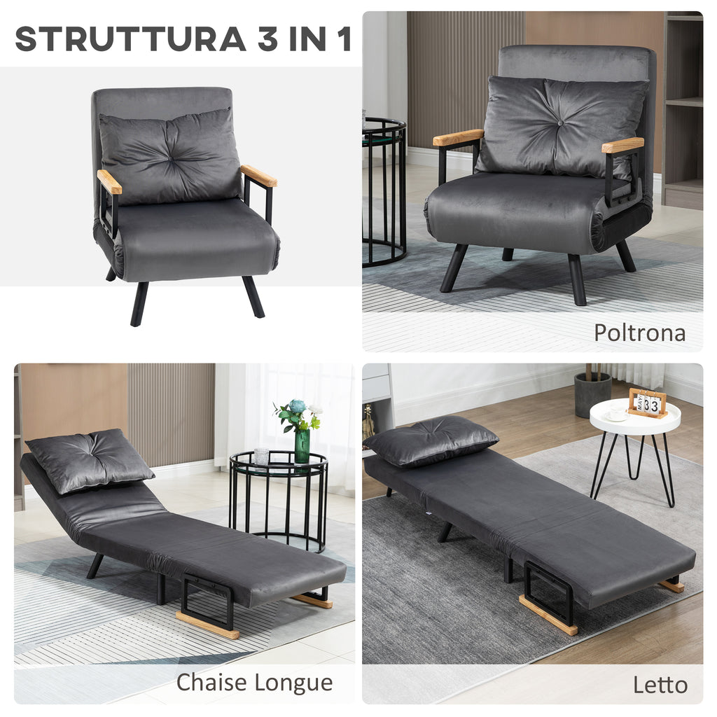 Poltrona Letto Singolo Trasformabile 63x73x81 cm in Tessuto Effetto Velluto Grigio Scuro