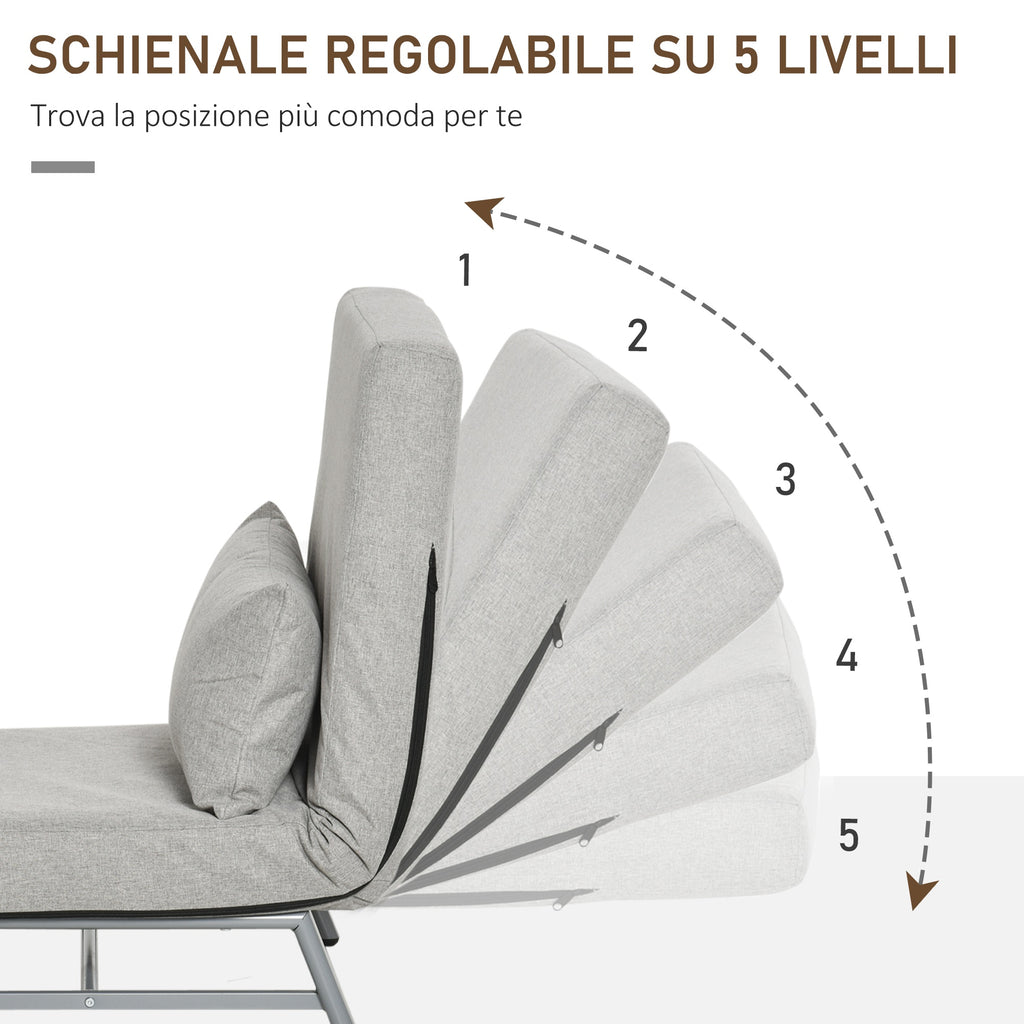 Poltrona Letto Singolo Trasformabile 73x60x81 cm Schienale Reclinabile Grigia
