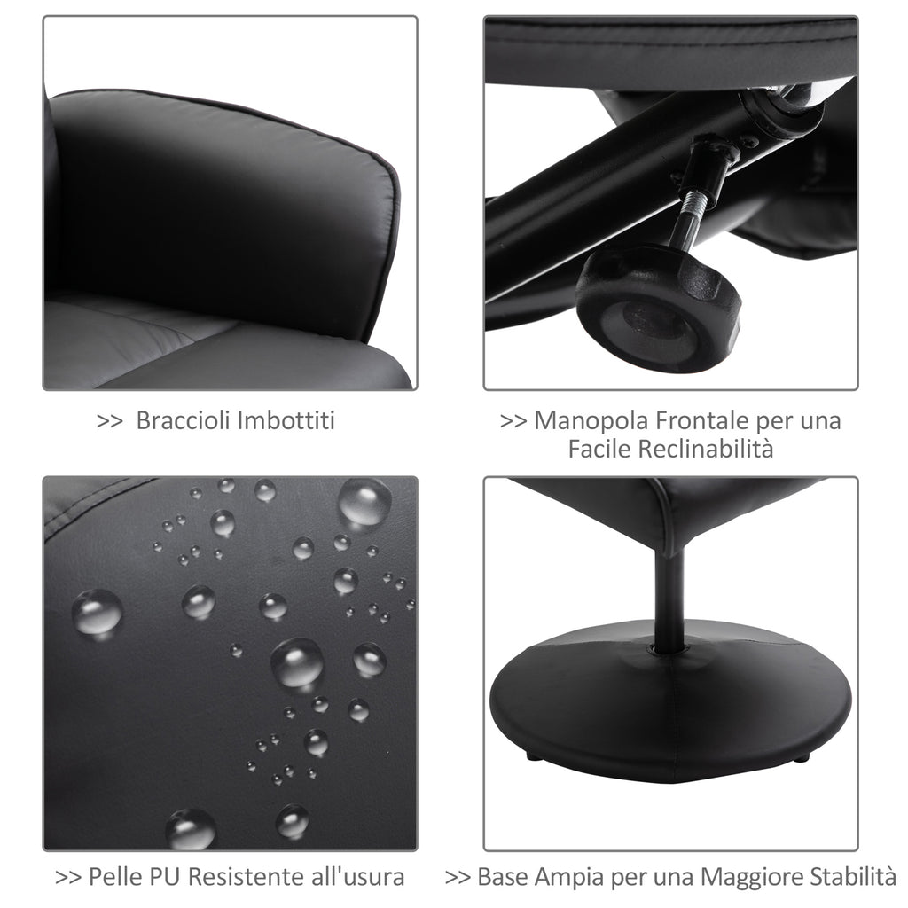 Poltrona Massaggiante con Pouf Poggiapiedi Reclinabile a 145° con Seduta Girevole e 10 Punti Massaggio Nero