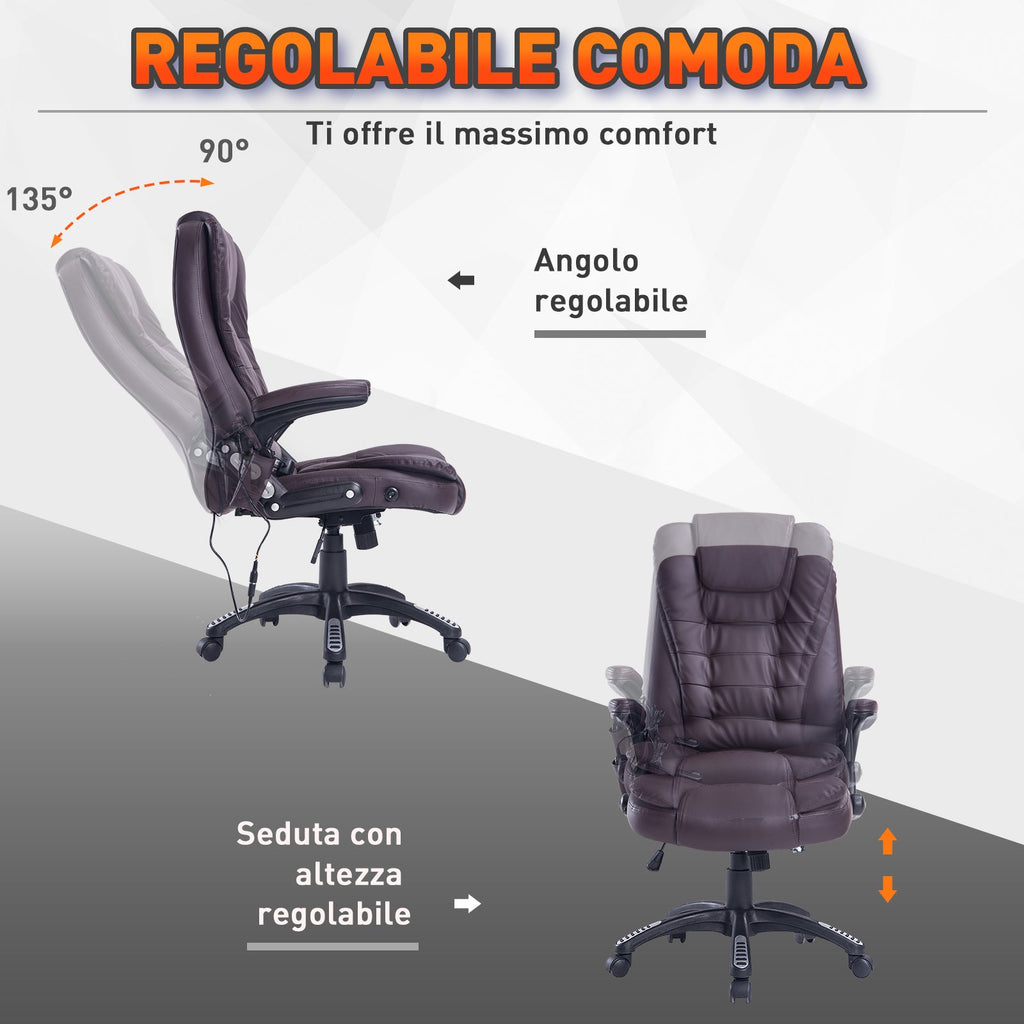 Sedia Poltrona Massaggiante da Ufficio 62x68x121 cm con Riscaldamento in Similpelle Marrone