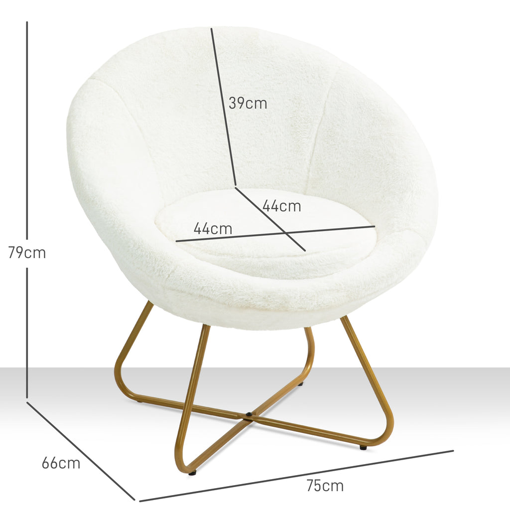 Poltrona Moderna da Camera in Finta Pelliccia con Gambe in Metallo 75x66x79 cm Bianco
