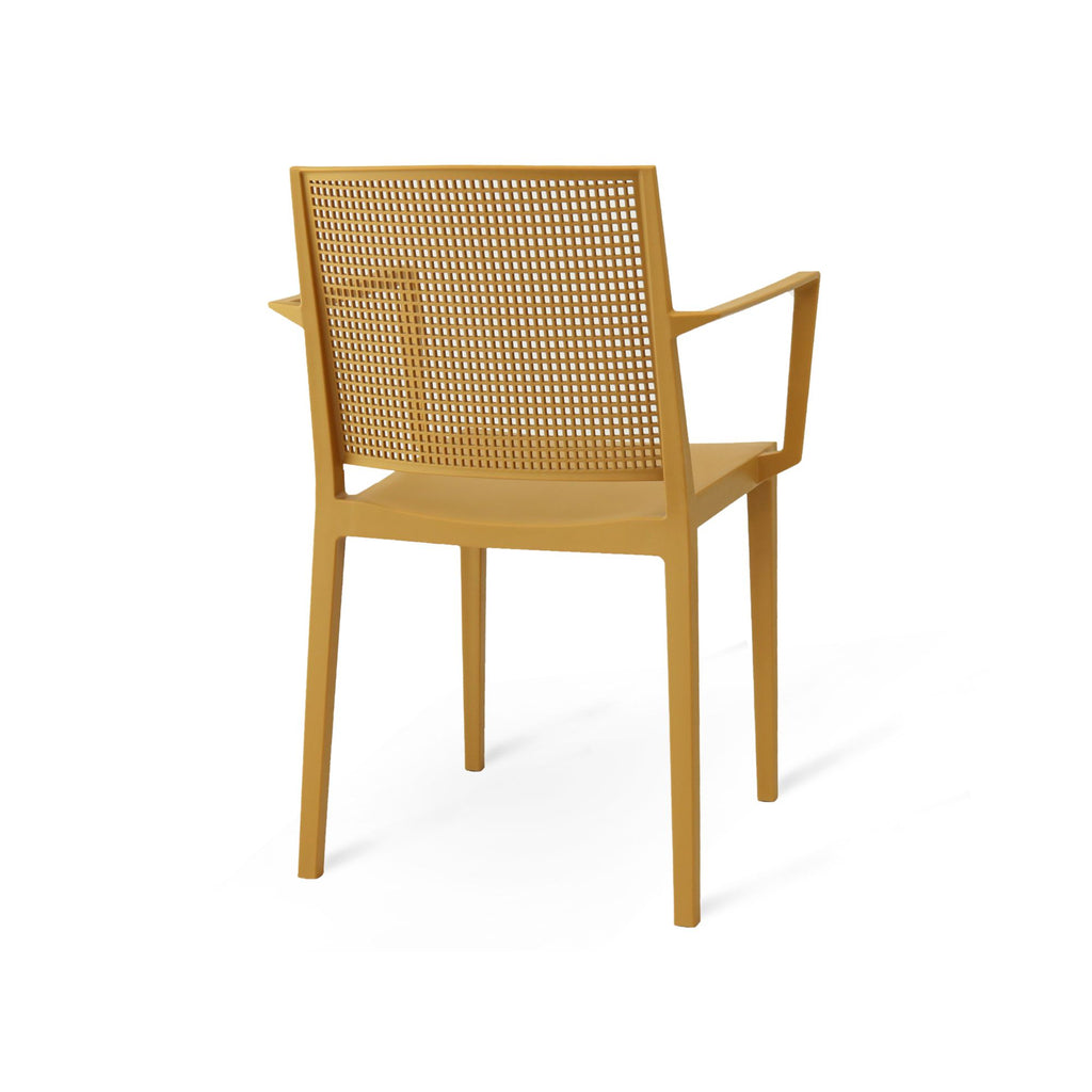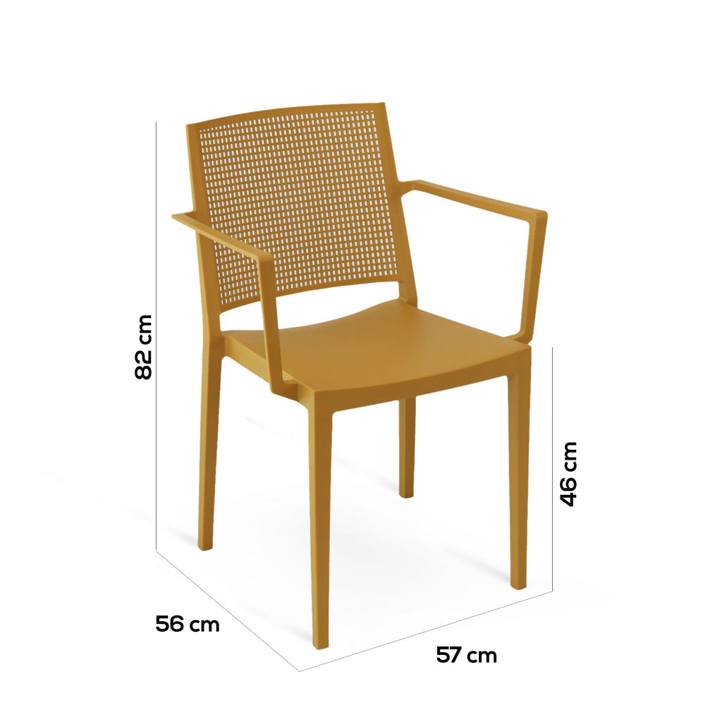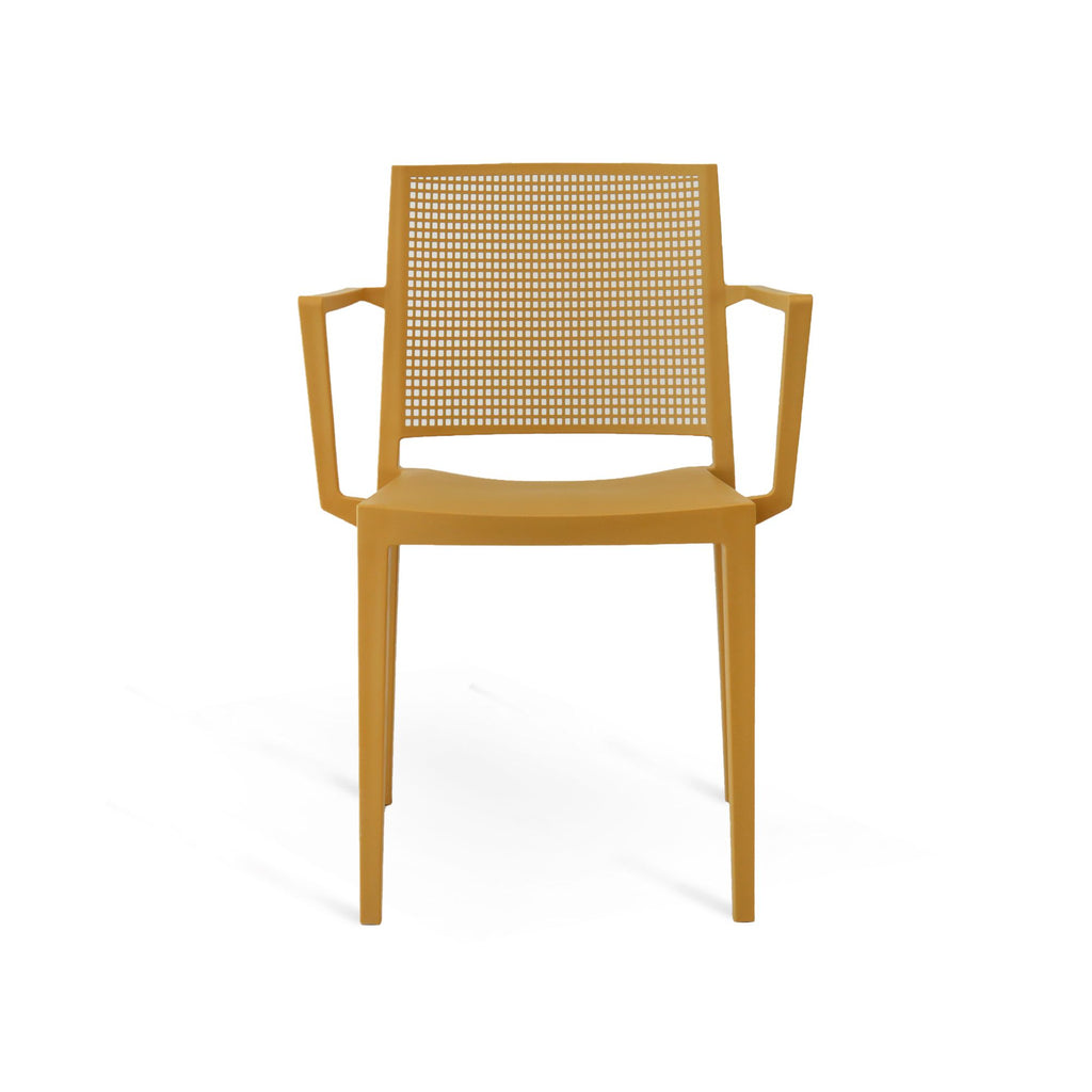 Poltrona con braccioli interamente realizzata in polipropilene senape.