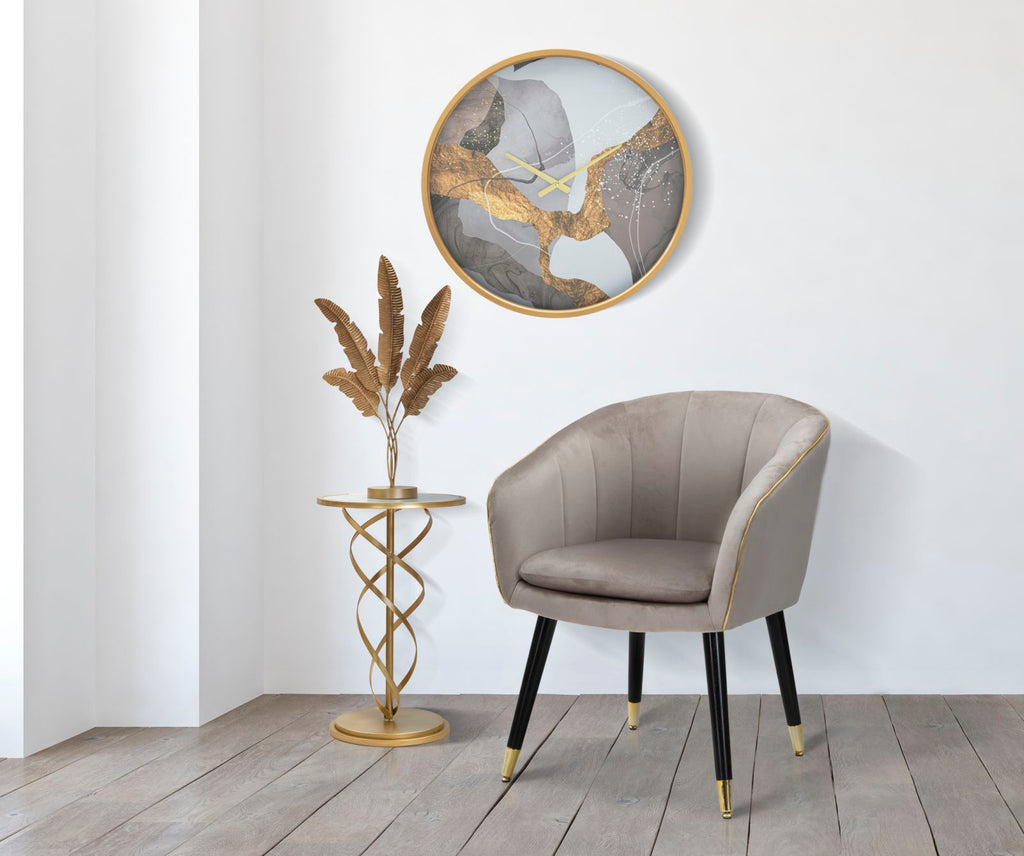 Poltrona Paris 62x58x78 cm in Legno Spugna Metallo e Poliestere Grigio,Nero e Oro