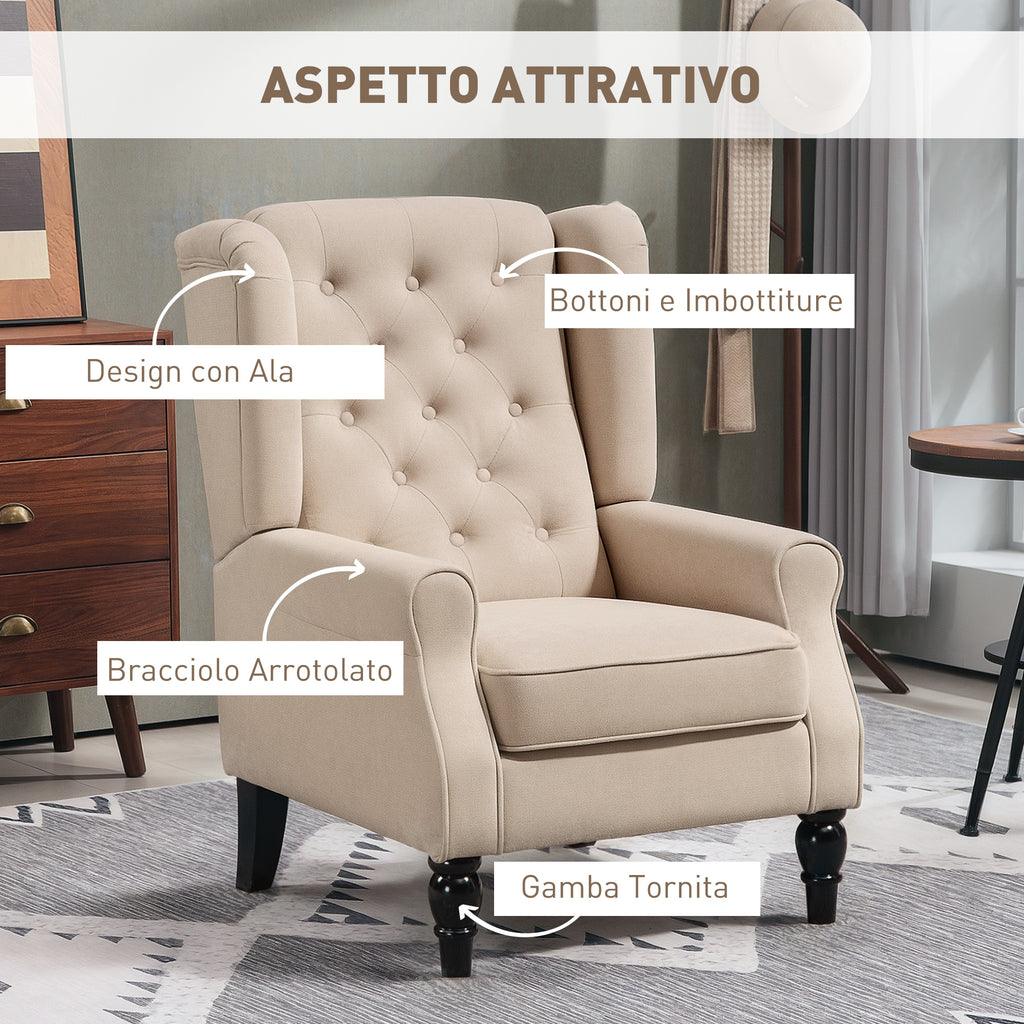 • PER OGNI TIPO DI ARREDO: Questa poltrona da salotto si abbina perfettamente ad ambienti domestici con arredi classici o contemporanei. Lo schienale è ornato di bottoni e sono presenti dei braccioli arrotolati per darti un tocco sofisticato in ogni angolo