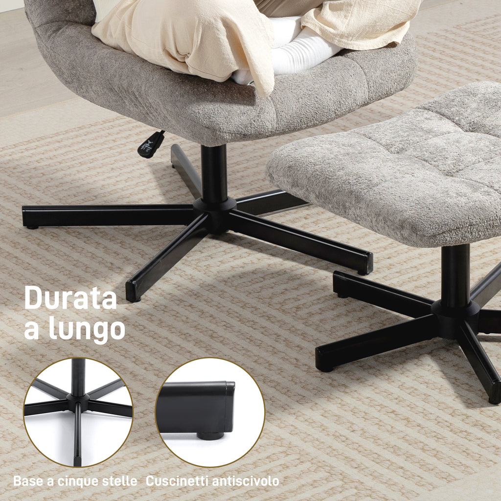 • ROTATIONE SENZA SFORZO: Questa poltrona d'arredo assicura una rotazione scorrevole di 360°, facilitando la possibilità di girarsi per leggere, conversare o prendere il caffè senza necessità di alzarsi