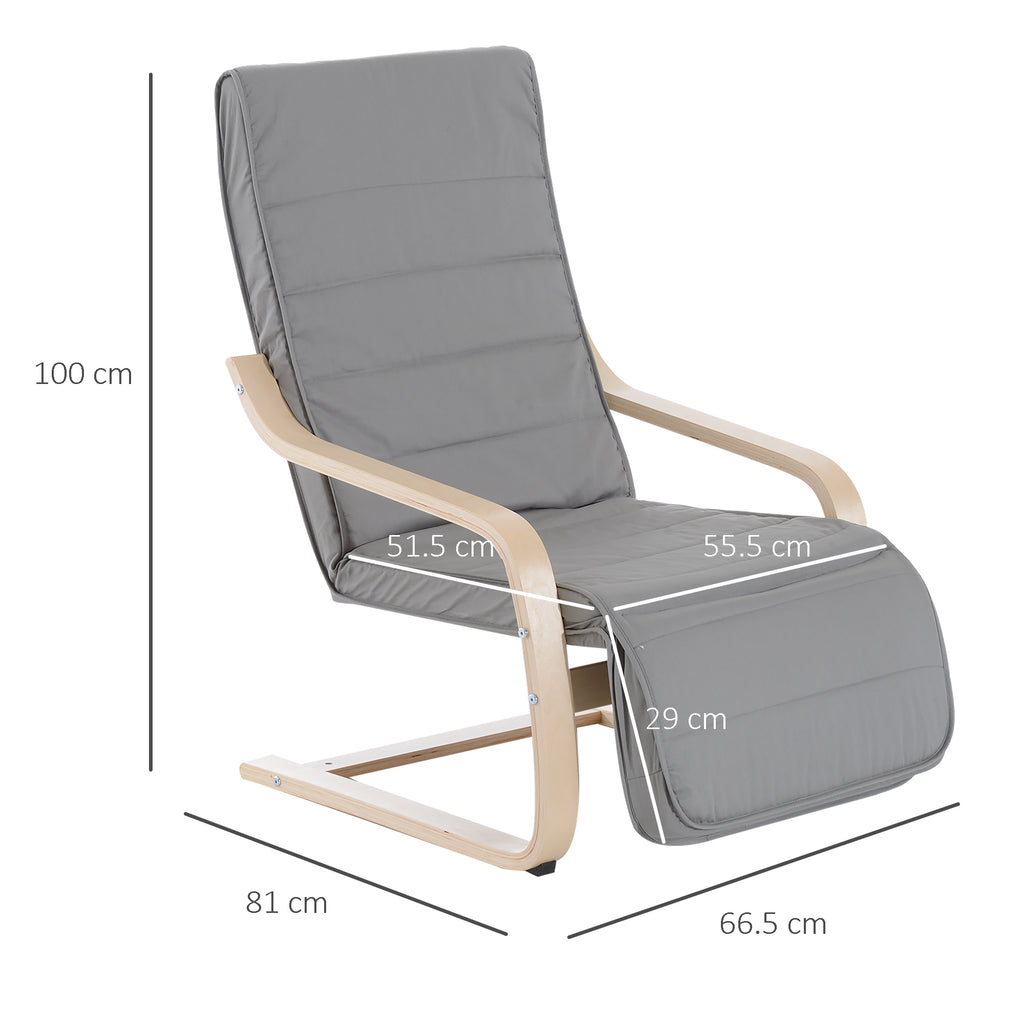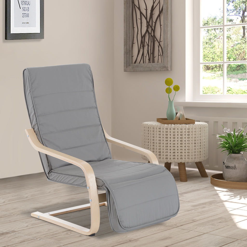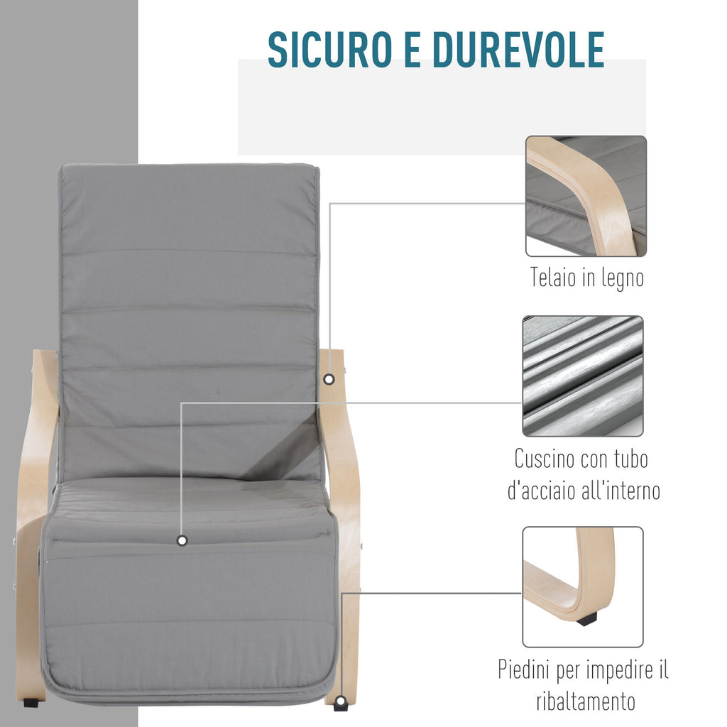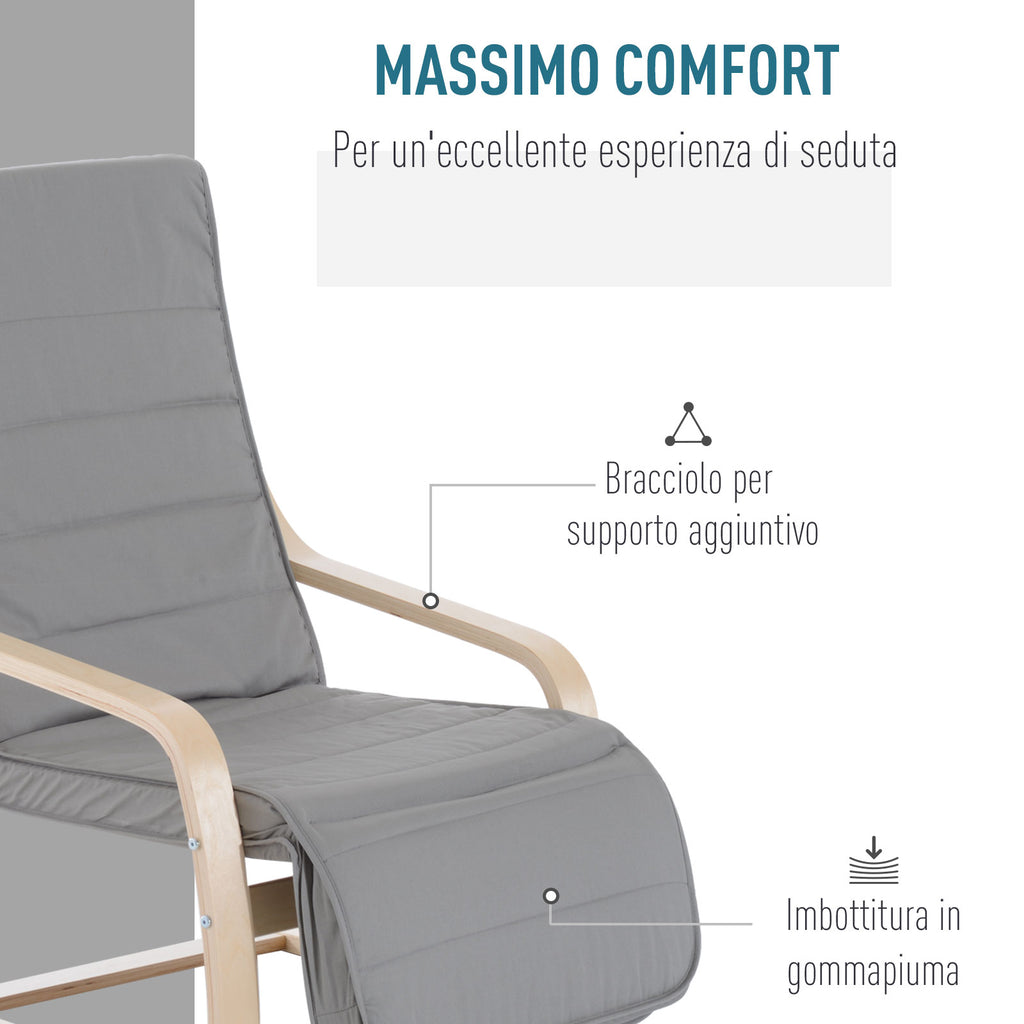 Poltrona Relax con Poggiapiedi a 5 Livelli in Legno di Betulla Grigio
