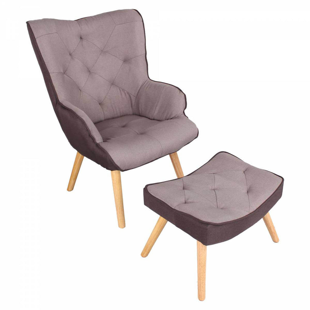 Poltrona Relax con Pouf Poggiapiedi in Tessuto Tortora