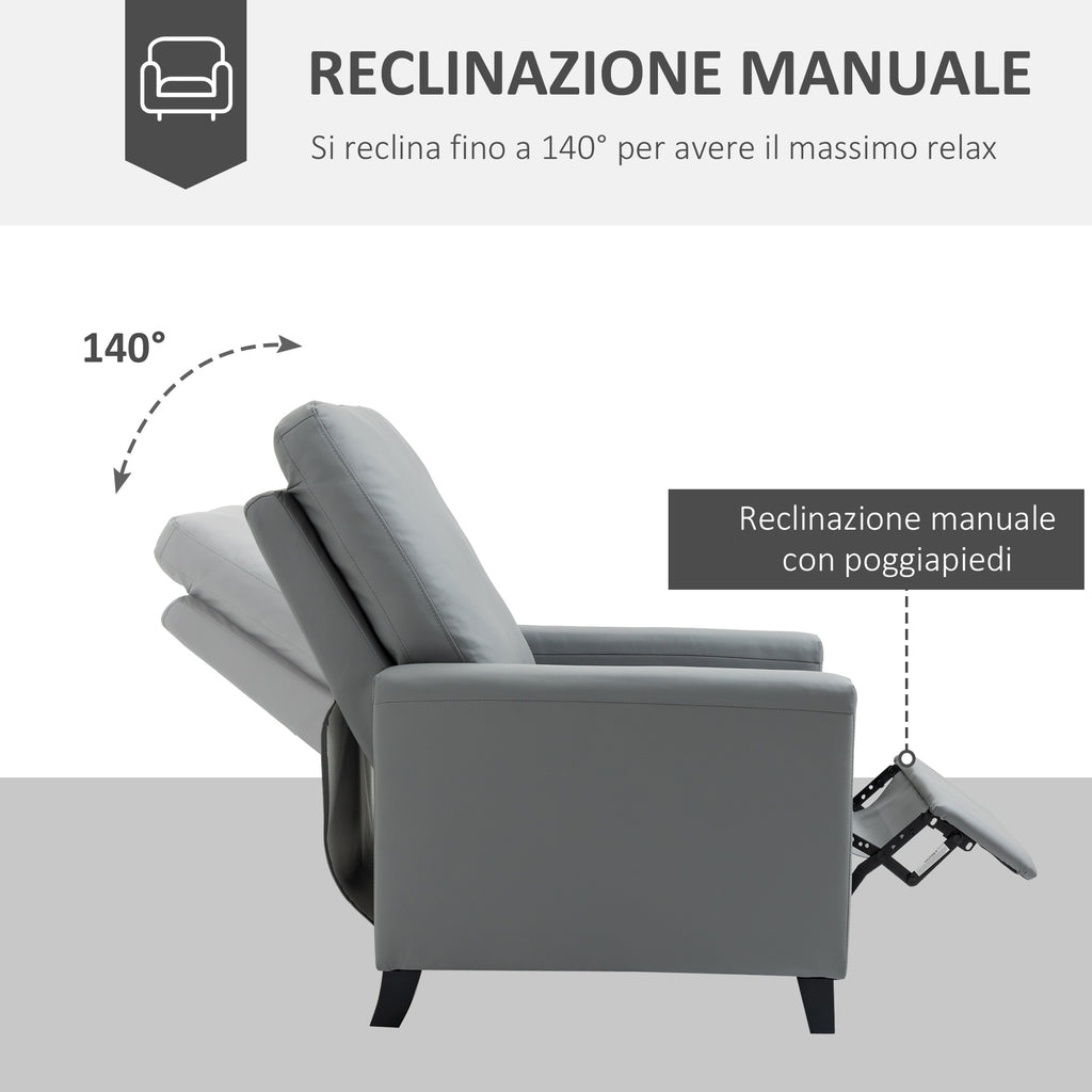 Poltrona Relax Manuale Reclinabile in Similpelle Grigio