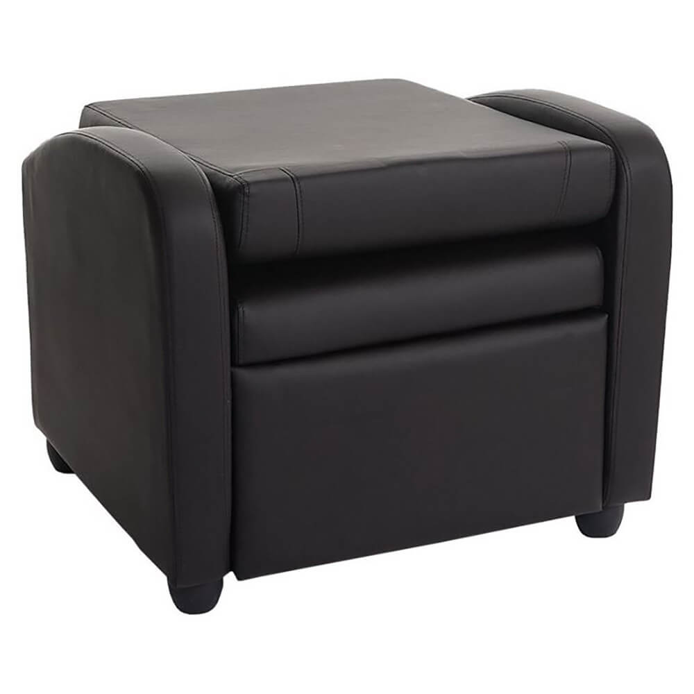 Si tratta a tutti gli effetti di una poltrona da TV, grazie ai comodi braccioli, allo schienale imbottito, e alla possibilità di distendere le gambe. Con una leggera pressione sui braccioli si può godere della migliore posizione grazie all'alzata del poggiapiedi. All'occorrenza la poltrona può essere richiusa formando un bellissimo pouf.