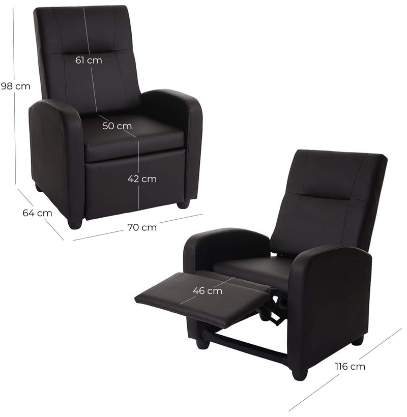 Poltrona Relax Manuale Reclinabile in Similpelle 70x98x64 cm Vandi Nera