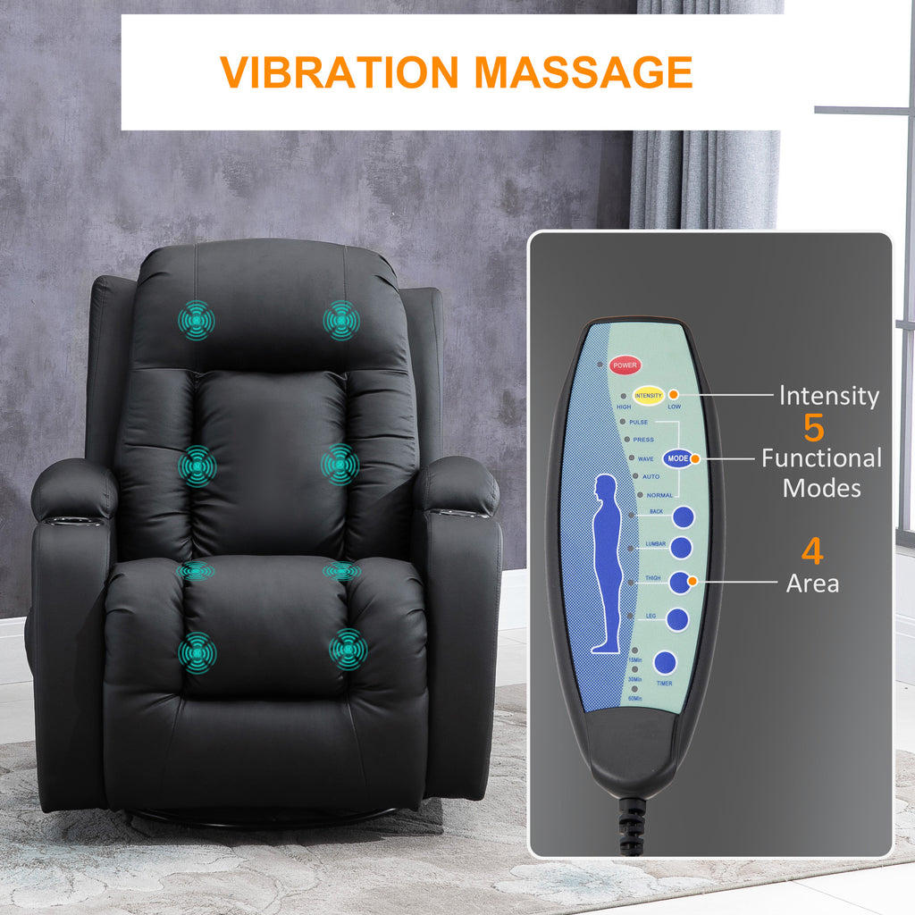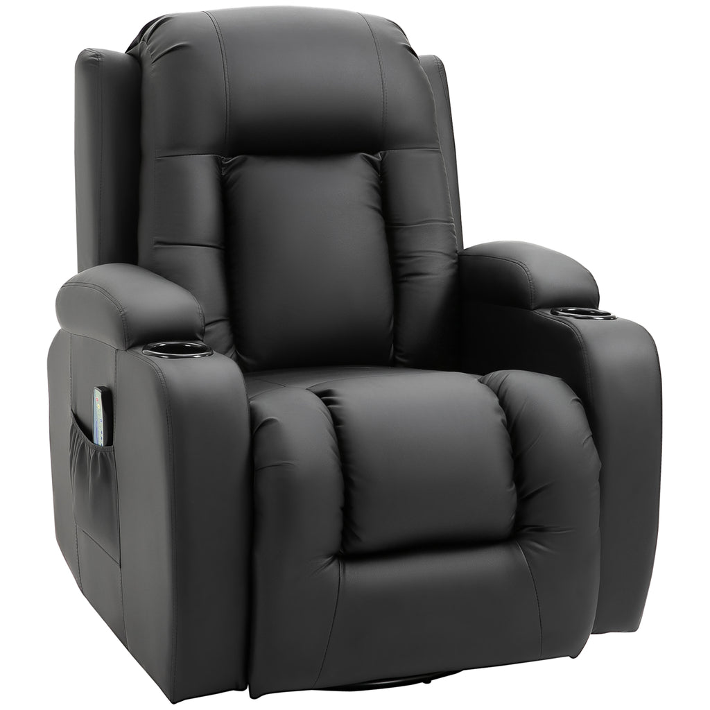 Poltrona Relax Massaggiante 85x94x104 cm Reclinabile in Similpelle Nero