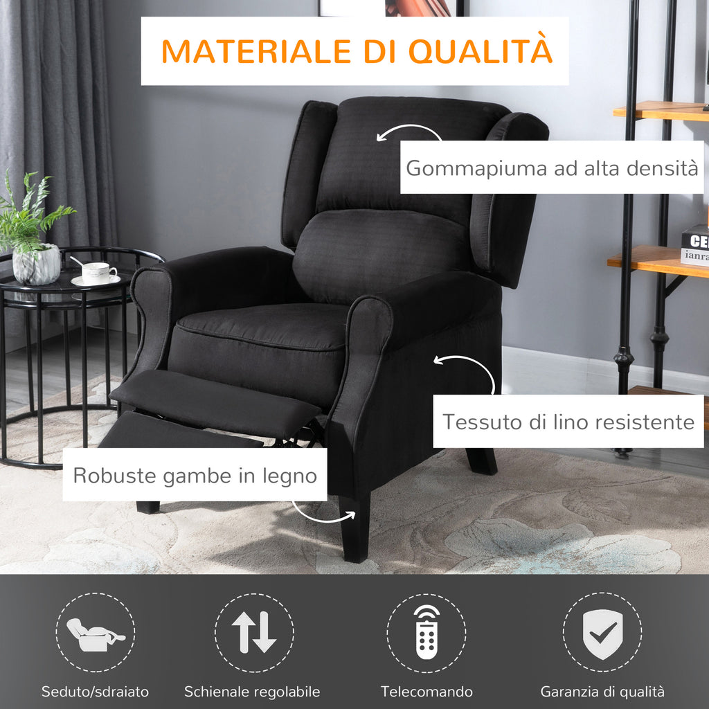 Il telecomando incluso può essere messo nella tasca laterale della poltrona.