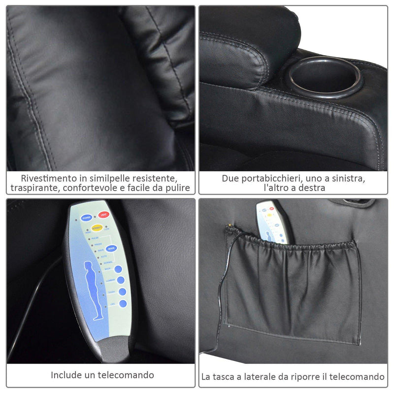 Poltrona Relax Massaggiante Riscaldabile in Similpelle Nero