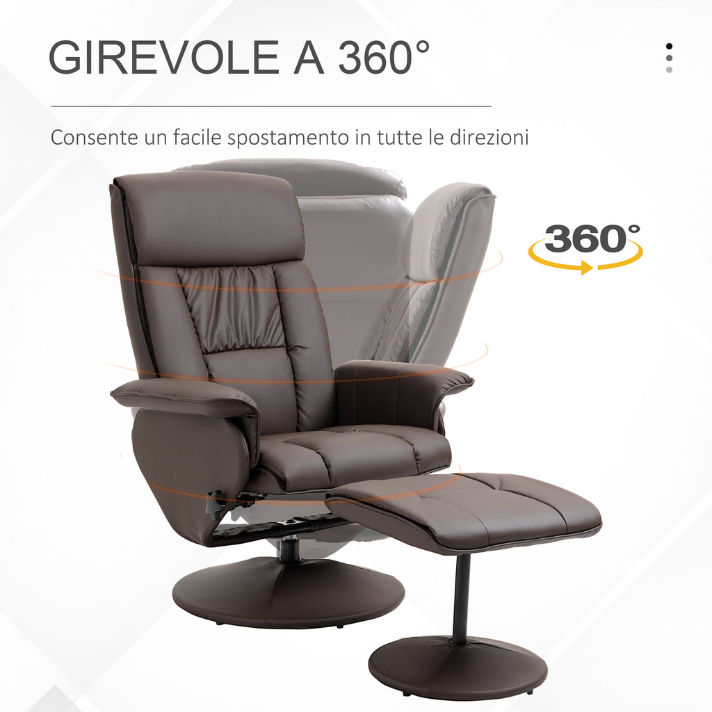 Poltrona Relax Reclinabile 80x69x110 cm con Seduta Girevole e Pouf Poggiapiedi Marrone
