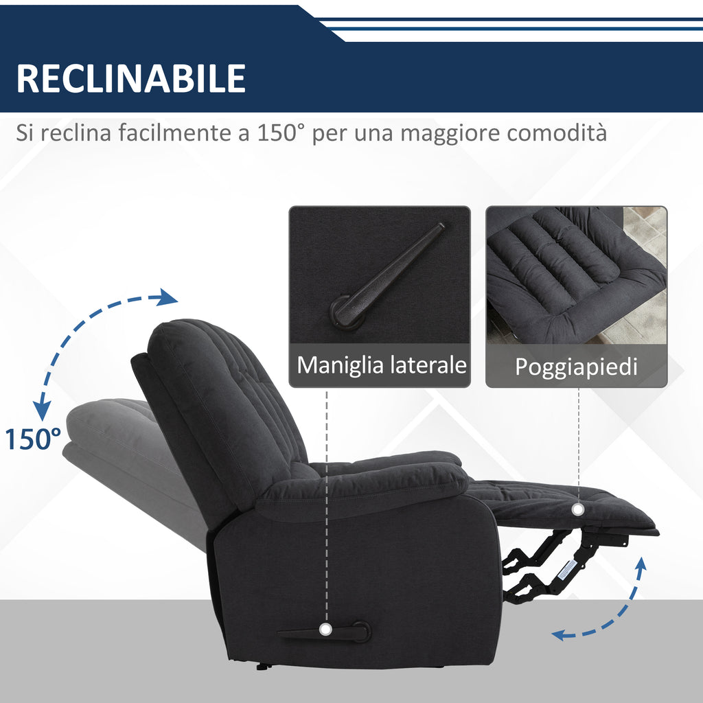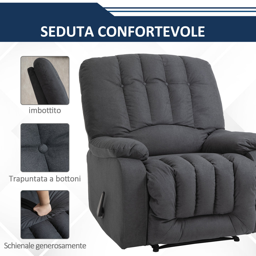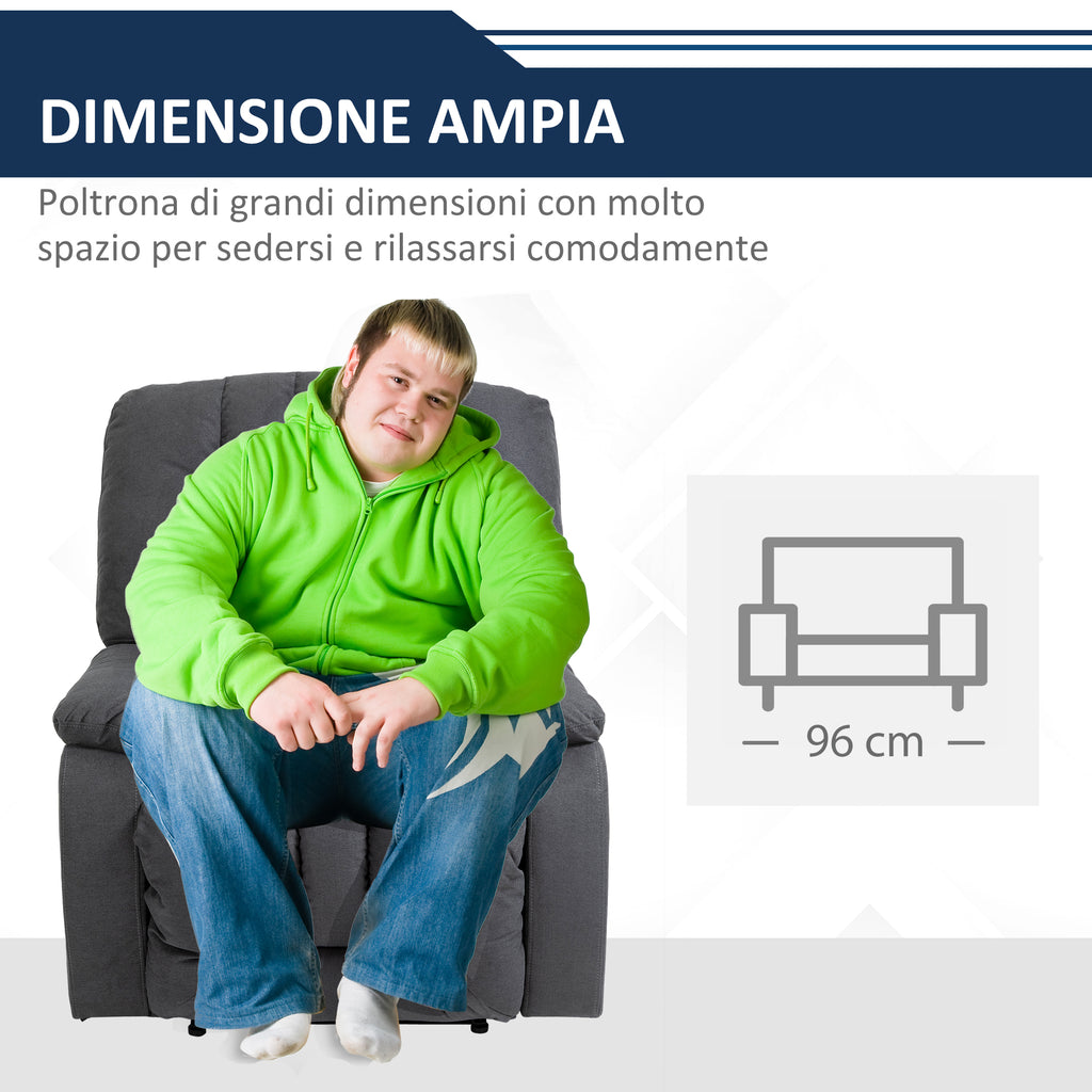 Poltrona Relax Reclinabile 96x99x104 cm in Tessuto Grigio