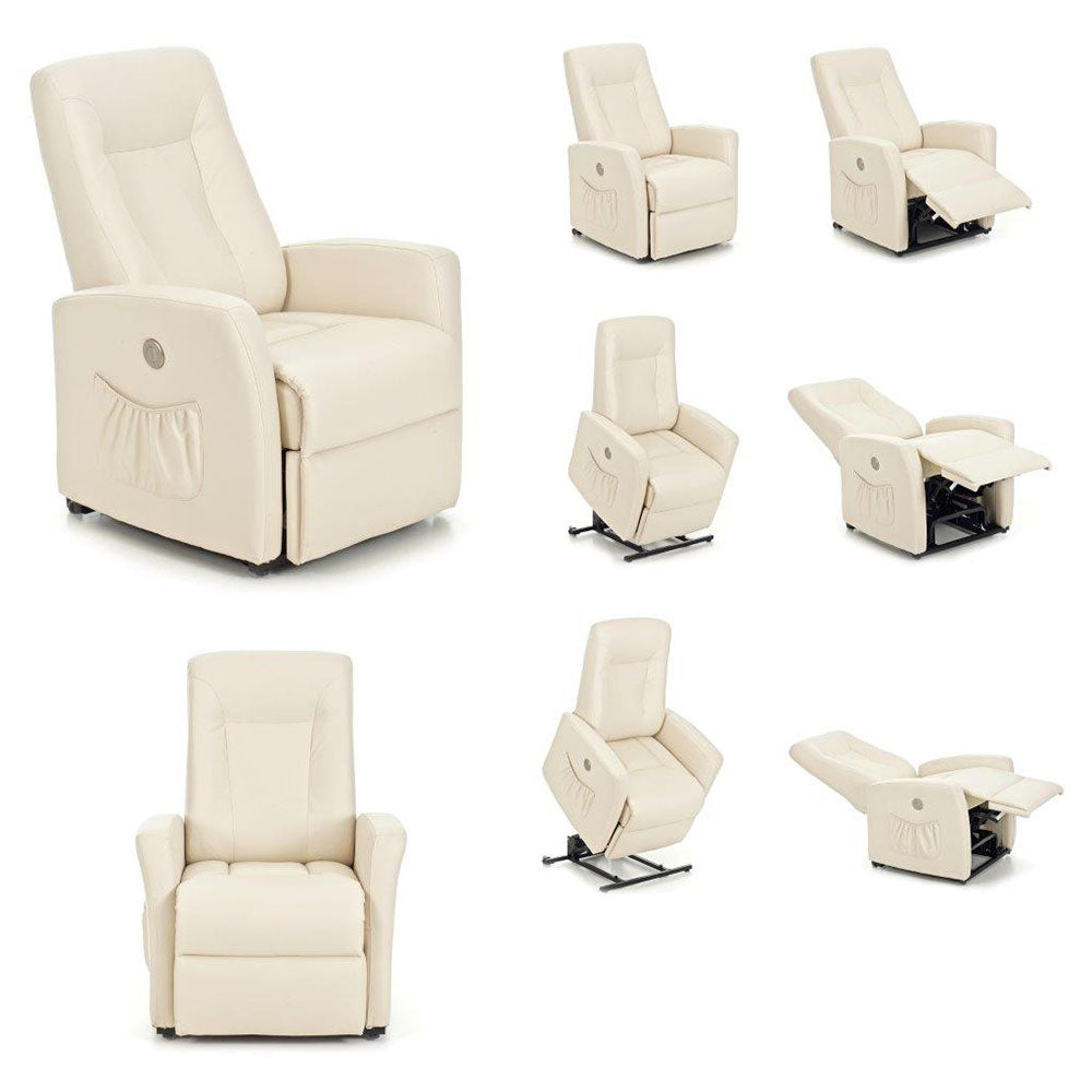 Poltrona Relax Reclinabile a Motore in Cuoio Ludovica Crema