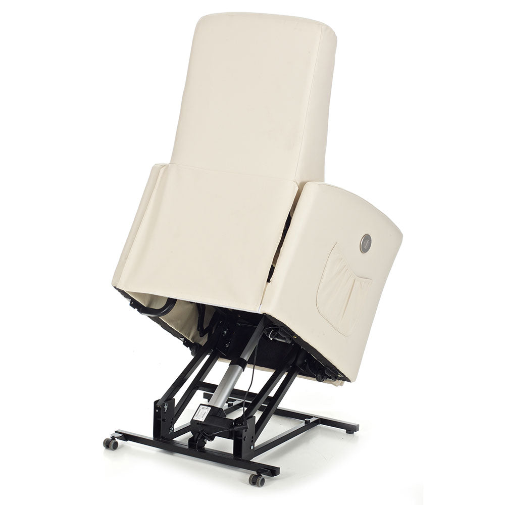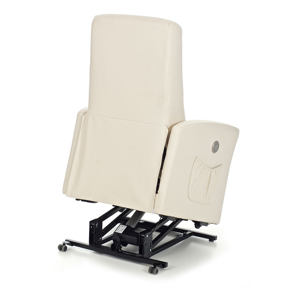 Poltrona dotata di sistema alzapersona (LIFT) con motore elettrico per la regolazione sincronizzata dello schienale e del poggiapiedi azionabile con pulsantiera laterale.
