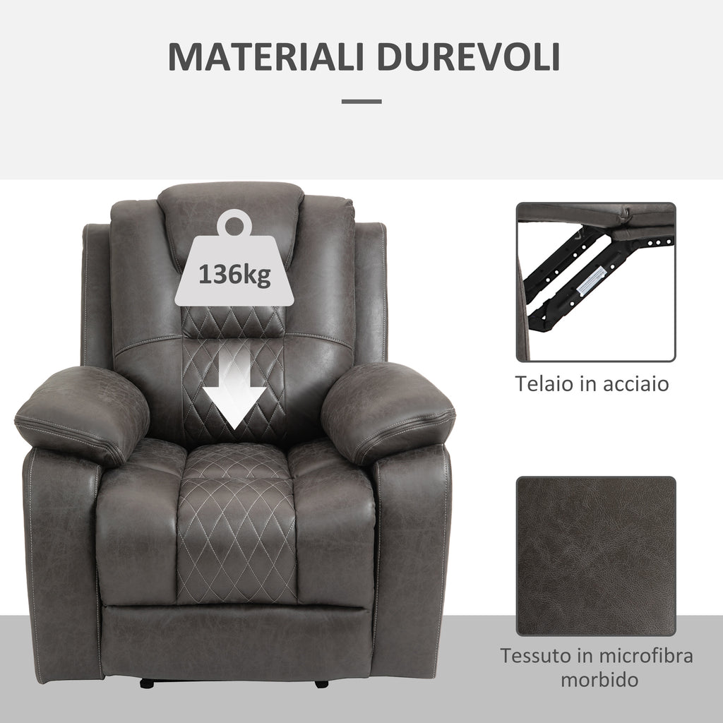 Trasforma i tuoi spazi portando tutta la comodità di una poltrona relax a casa tua. Tirando una maniglia e facendo pressione sullo schienale ti puoi reclinare completamente per guardare la TV o per fare un sonnellino. L'imbottitura extra e il rivestimento traspirante in microfibra rendono questa poltrona reclinabile super confortevole. La base in metallo ti assicura massima stabilità e resistenza.