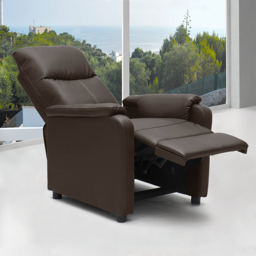 Poltrona Relax Reclinabile Manuale 75x95x103 cm in Similpelle Marrone Scuro