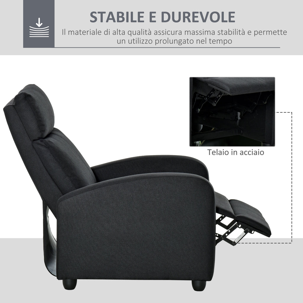 Poltrona Relax Reclinabile Manuale in Lino Nera